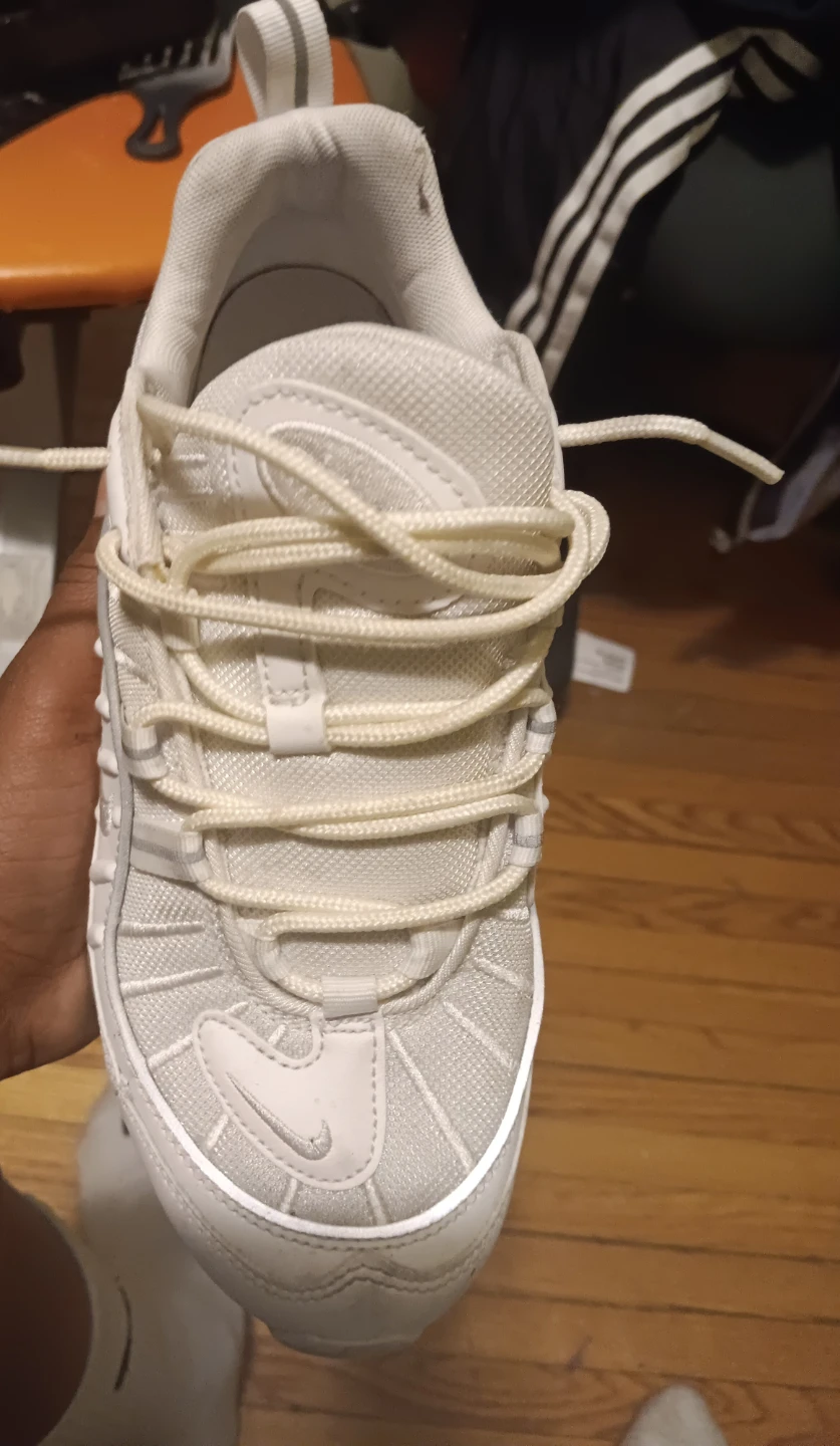 Selling a pair of Nike Air Max 98 sneakers size 8, in white. They're in good condition and ready for a new owner!