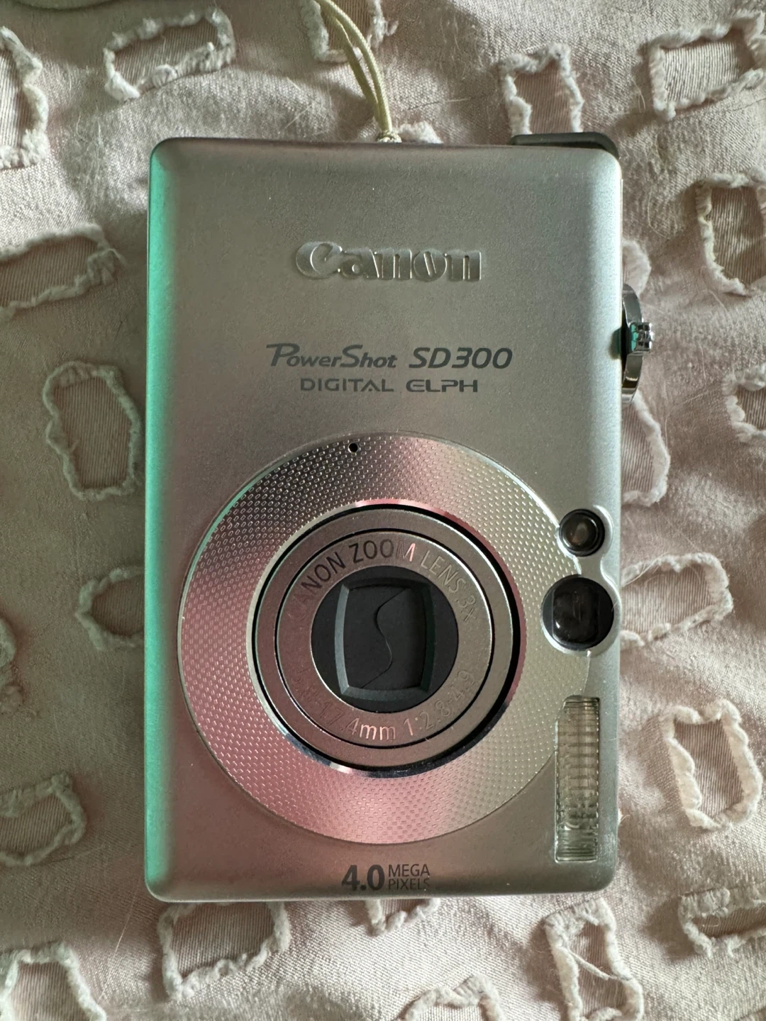 This is a Canon PowerShot SD300 Digital ELPH camera. It's a compact digital camera with a 4.0-megapixel sensor. Includes the battery charger and battery . Great for taking quick snapshots!