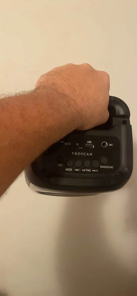 Buy & SellProscan SpeakerProscan Speaker$65Has scratches. Battery life is unknown. Has good sound and is pretty loud. Comes with charger, but no box. No refunds.WHERE TO MEETCheck LocationView MapSELLERWilliamW Brant100 reviews0 chats·0 favorites·0 viewsSEND CHAT TO SELLERHi William! I’m interested in your listing.Hi William! I’m interested in your listing.Get the Karrot app to chatSign In to chat