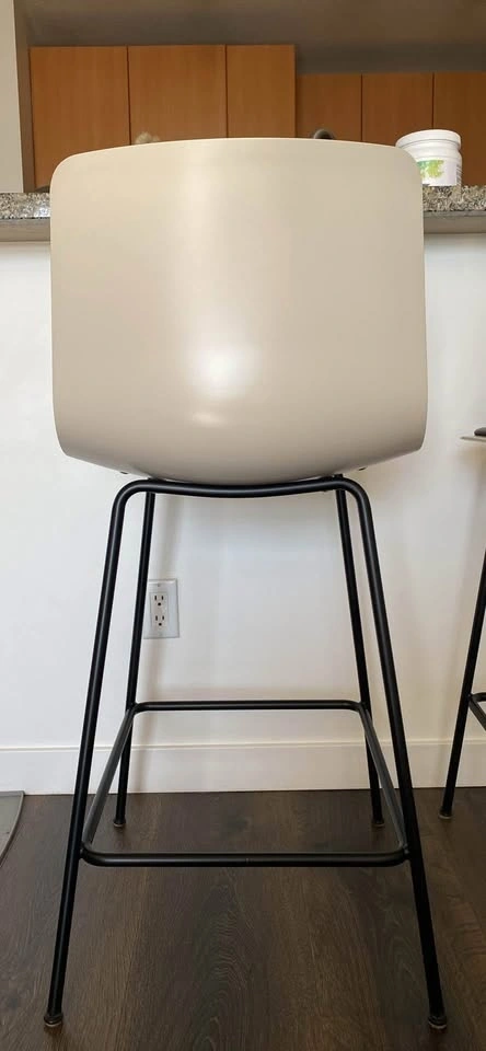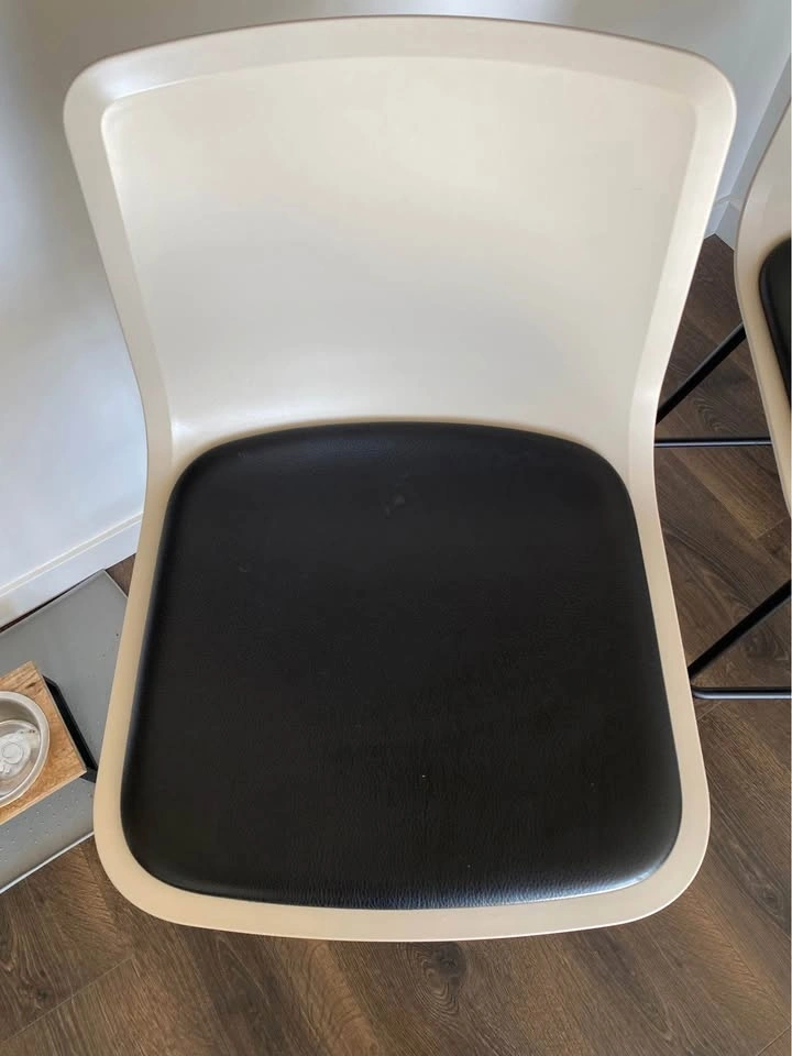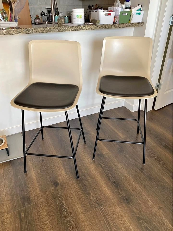 Selling a pair of 2 Fredericia Pato 4 Leg Counter/Bar Stools. Counter Height. Seat Upholstery: Premium Black Leather. Shell Finish: Sand FF. Frame Finish: Black. Glides with felt. Minor flaw on one seat, shown in photos (5th photo near back). Otherwise excellent condition. Pick up in North Van only.