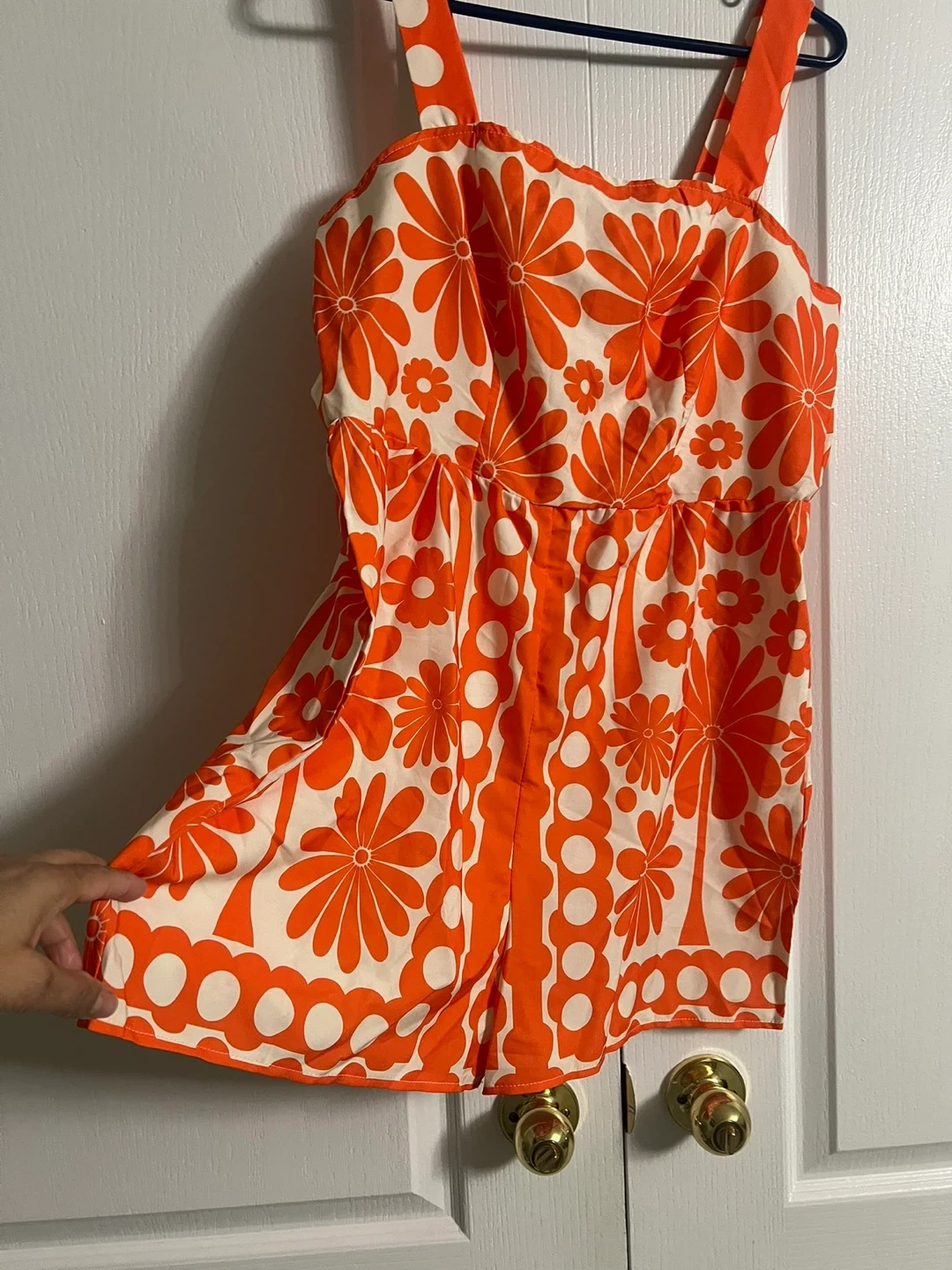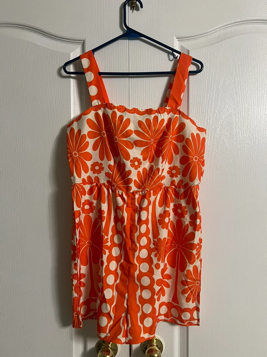 Orange Floral Romper / White Polka Dot Romper