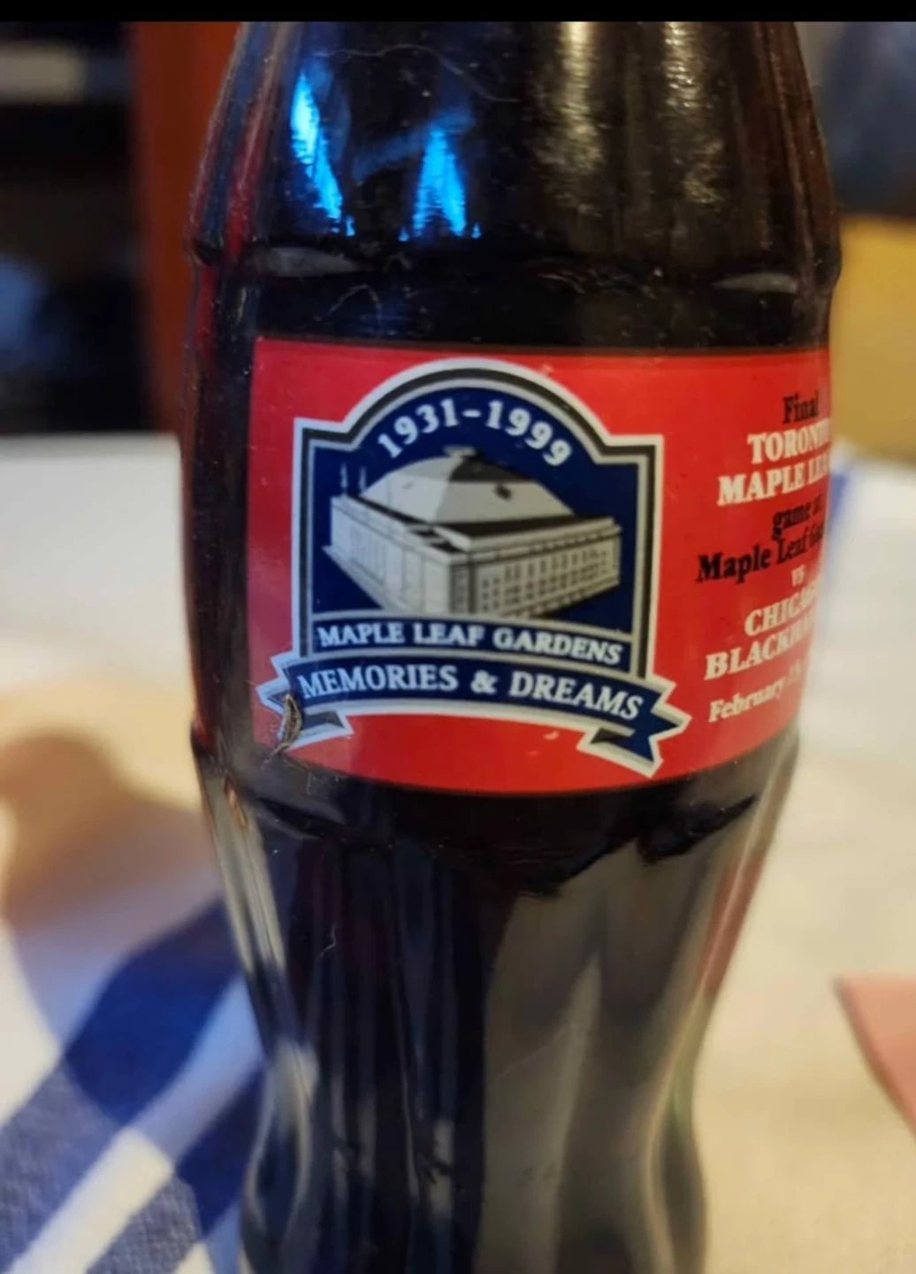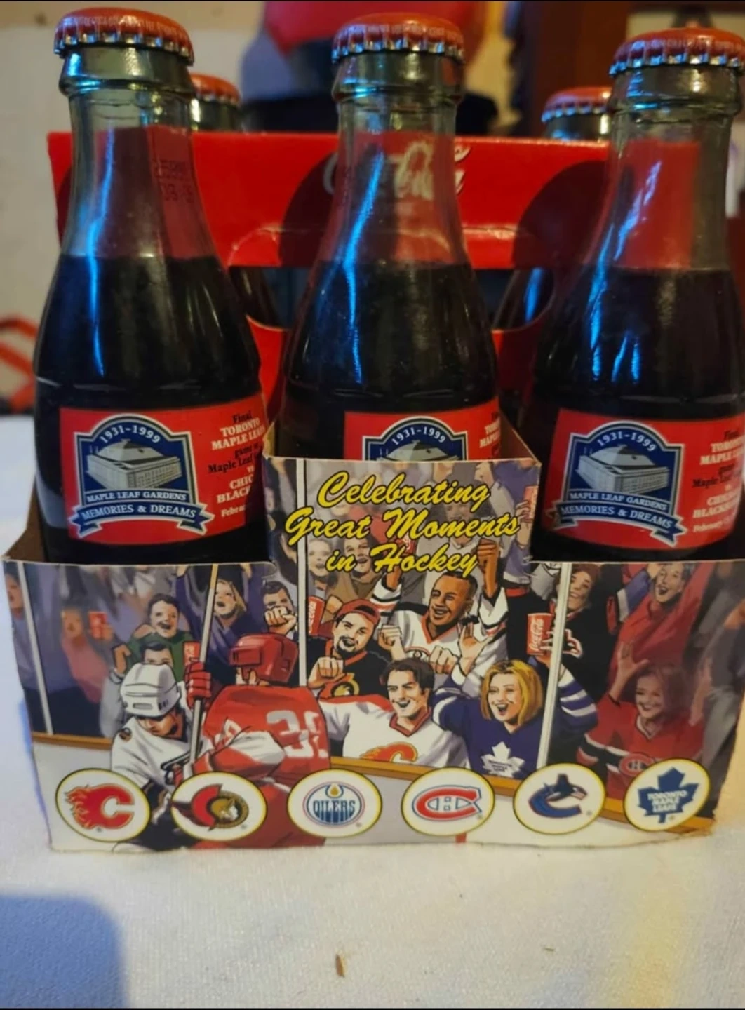 This set features Coca-Cola bottles commemorating the final Toronto Maple Leafs game at Maple Leaf Gardens on February 13, 1999. The bottles celebrate 'Maple Leaf Gardens Memories & Dreams'. A special insert highlights 'Celebrating Great Moments in Hockey'. This is a fantastic collectible for any hockey fan!