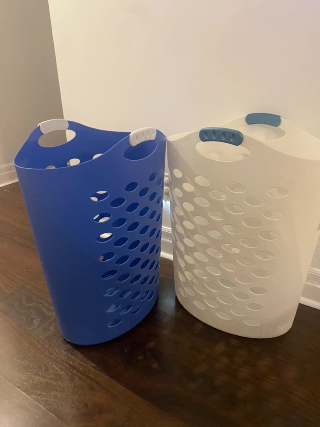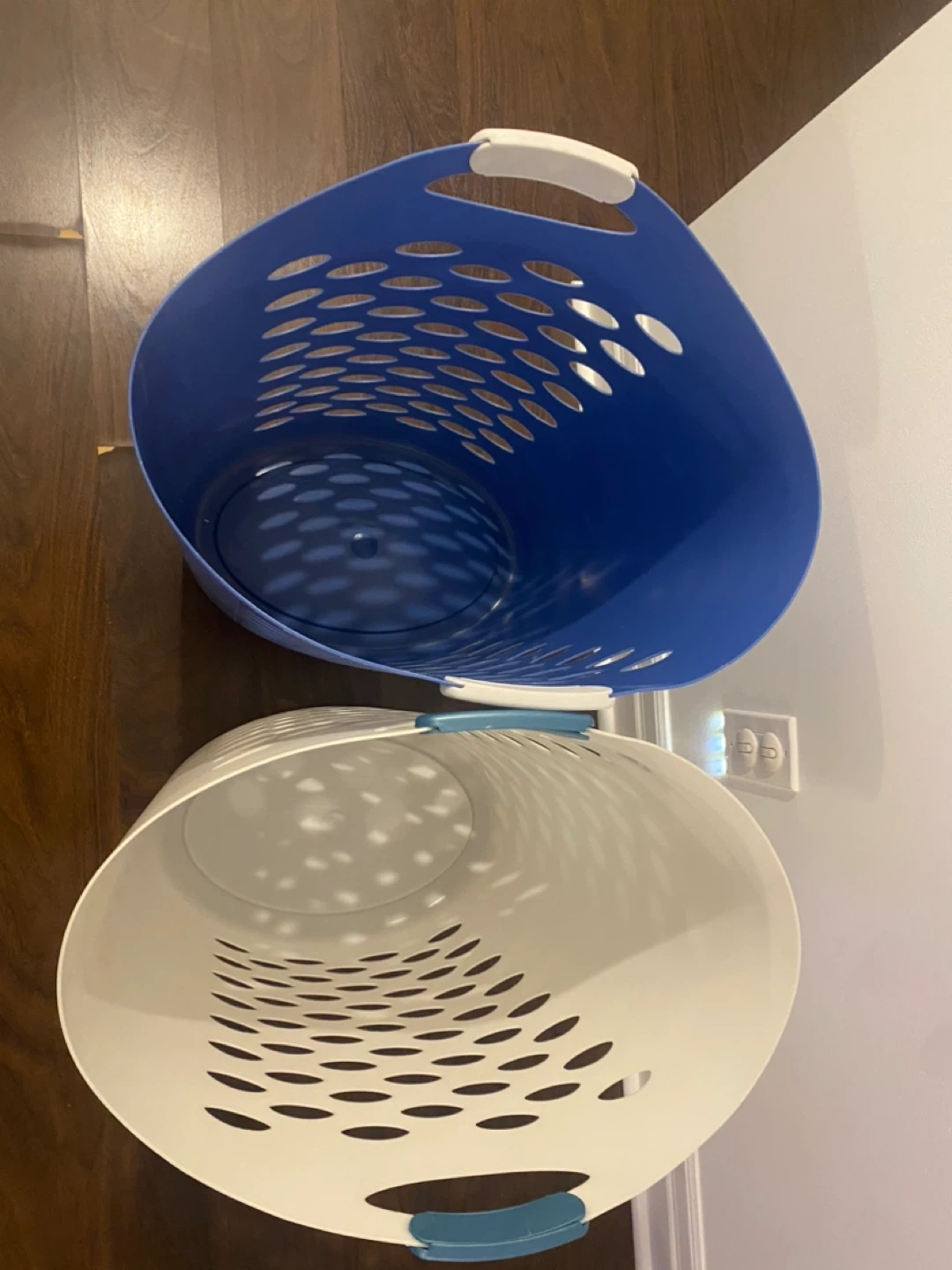 Selling two Rubbermaid laundry baskets, one blue and one white. They're in great shape and ready to help with your laundry needs!