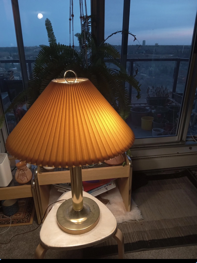 Vintage Brass Table Lamp with Pleated Shade