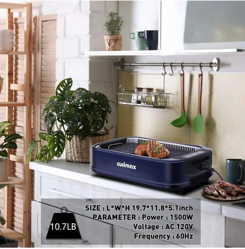 Grill whenever & wherever you want! No need to battle with grilling outside in a storm or choking on smoke. This Cusimax smokeless grill means no more cloudy smoke in your house. Just sit around and grill at home! This Electric Indoor Grill saves you money on going out for BBQ. Enjoy it in your condo, RV, or at a party without trouble.