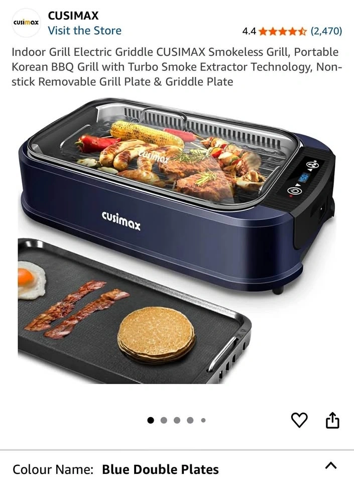 2 in 1 Grill & Griddle with Glass Lid: Just switch the top grill/griddle plate as you like. This Cusimax electric grill griddle lets you finish your whole-day meals on ONE device. Cooked bacon without any splatter. The glass lid keeps heat in with the thermostat control, and lets you see your food easily.