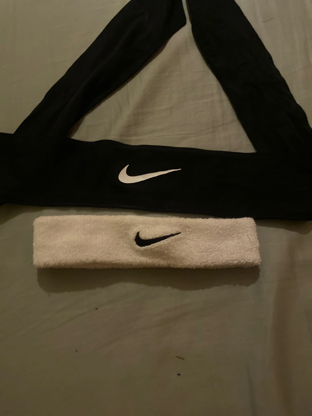 Selling a couple of Nike headbands! One is black and the other is white. Perfect for sports or just keeping your hair out of your face!