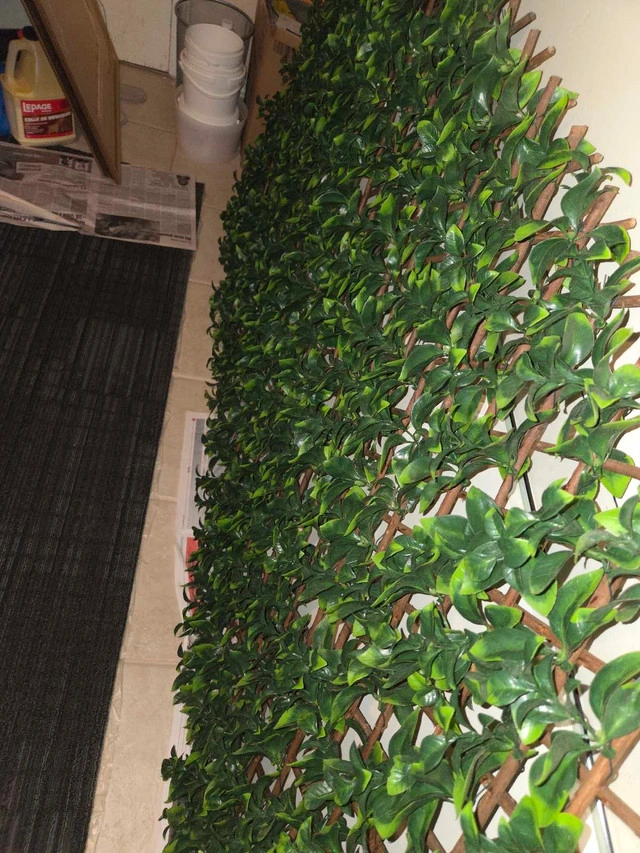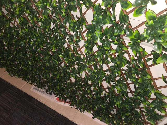 Add a touch of greenery to your space with this used artificial expandable fence, perfect for adding privacy or decor to your garden or balcony. It's in good condition, ready to bring a fresh look to any area. Dimensions: 80" x 33" when fully expanded 16" x 46" in it's smallest form