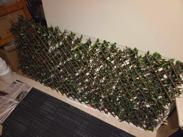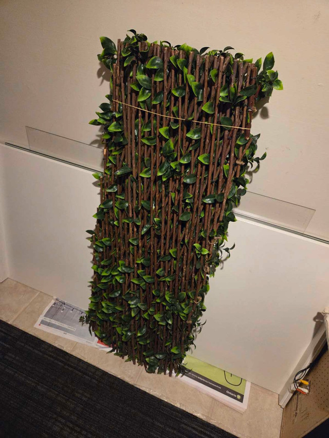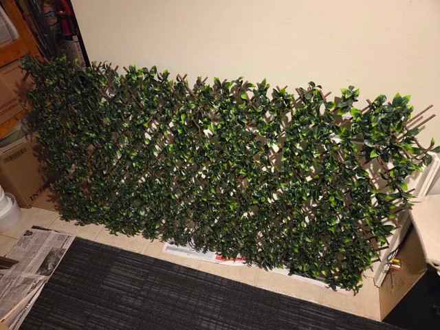 Add a touch of greenery to your space with this used artificial expandable fence, perfect for adding privacy or decor to your garden or balcony. It's in good condition, ready to bring a fresh look to any area. Dimensions: 80" x 33" when fully expanded 16" x 46" in it's smallest form