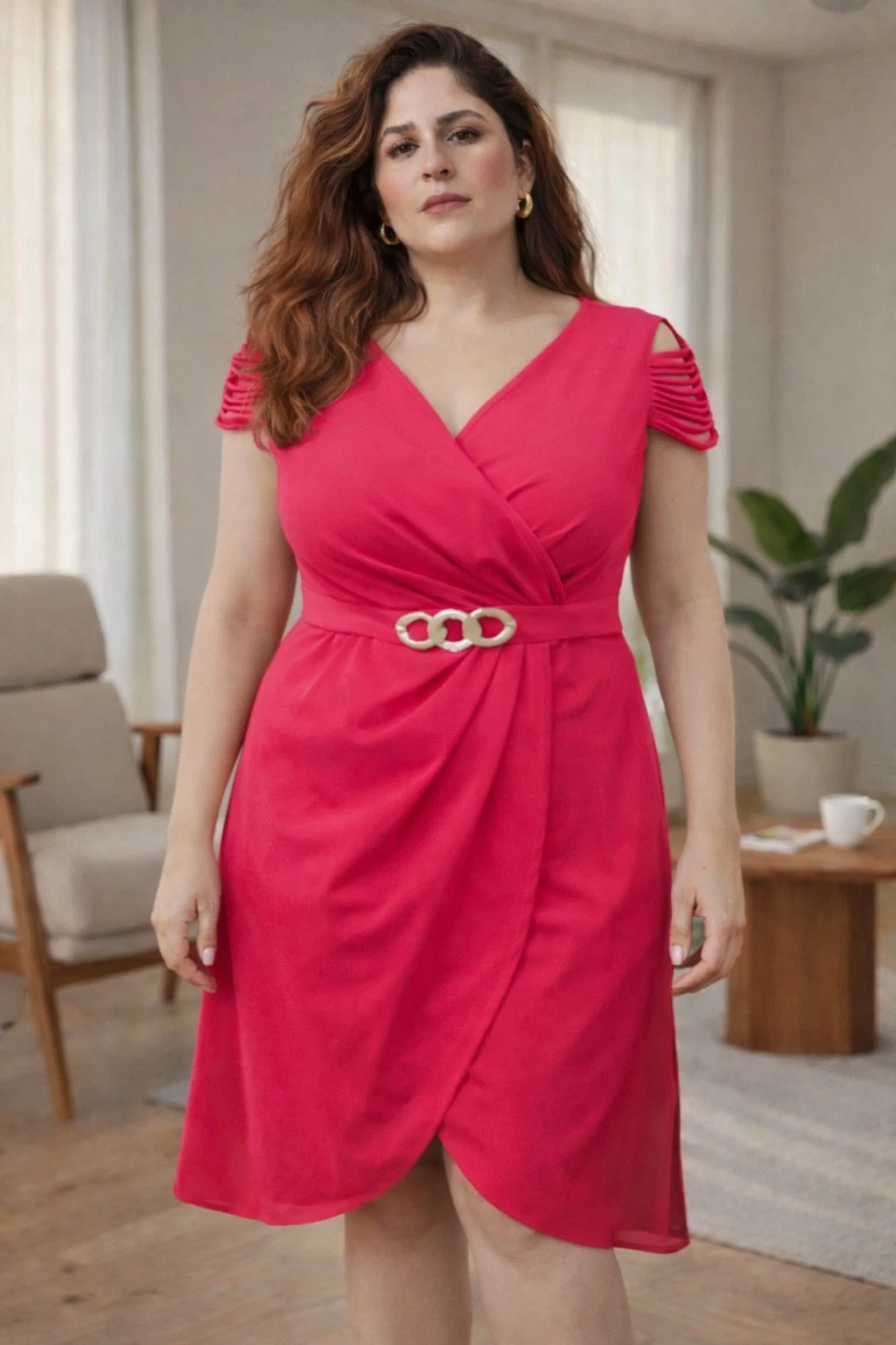 A lovely pink wrap dress. It features a flattering wrap design and a stylish belt detail. Perfect for a variety of occasions! Used for a photo shoot only