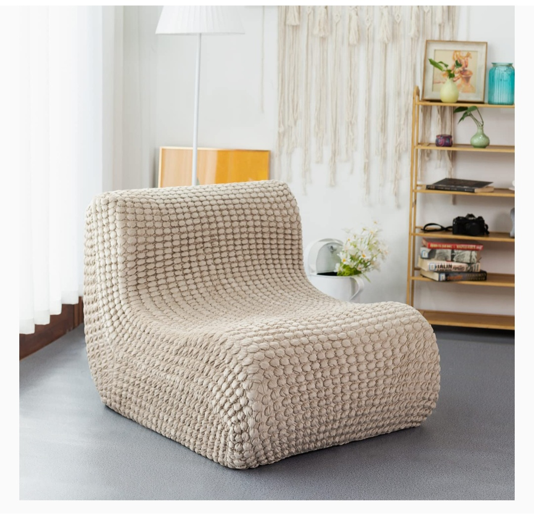 Add a touch of unique style to your space with this textured accent chair! It comes in a lovely beige and brown colour combination. The approximate dimensions are 37.5" x 30" x 28.5". Perfect for a cozy reading nook or a stylish living room addition