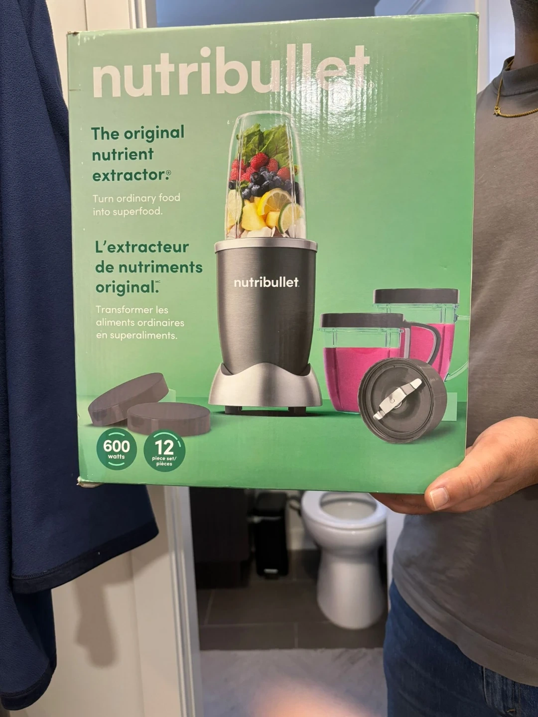 This is the original NutriBullet nutrient extractor. It's a 600-watt blender designed to turn ordinary food into superfood. The set includes 12 pieces for versatile use.