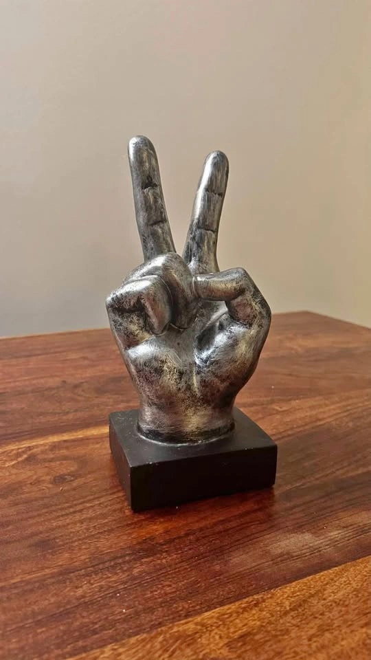 Buy & SellVictory Fingers Decoration Metal ColorVictory Fingers Decoration Metal Color$15Decorative victory fingers with a metal finish and black base. Pick up in Sandy Hill.WHERE TO MEETCheck LocationView MapSELLERSarahSandy Hill100 reviews0 chats·0 favorites·3 viewsSEND CHAT TO SELLERHi Sarah! I’m interested in your listing.Hi Sarah! I’m interested in your listing.Get the Karrot app to chatSign In to chat
