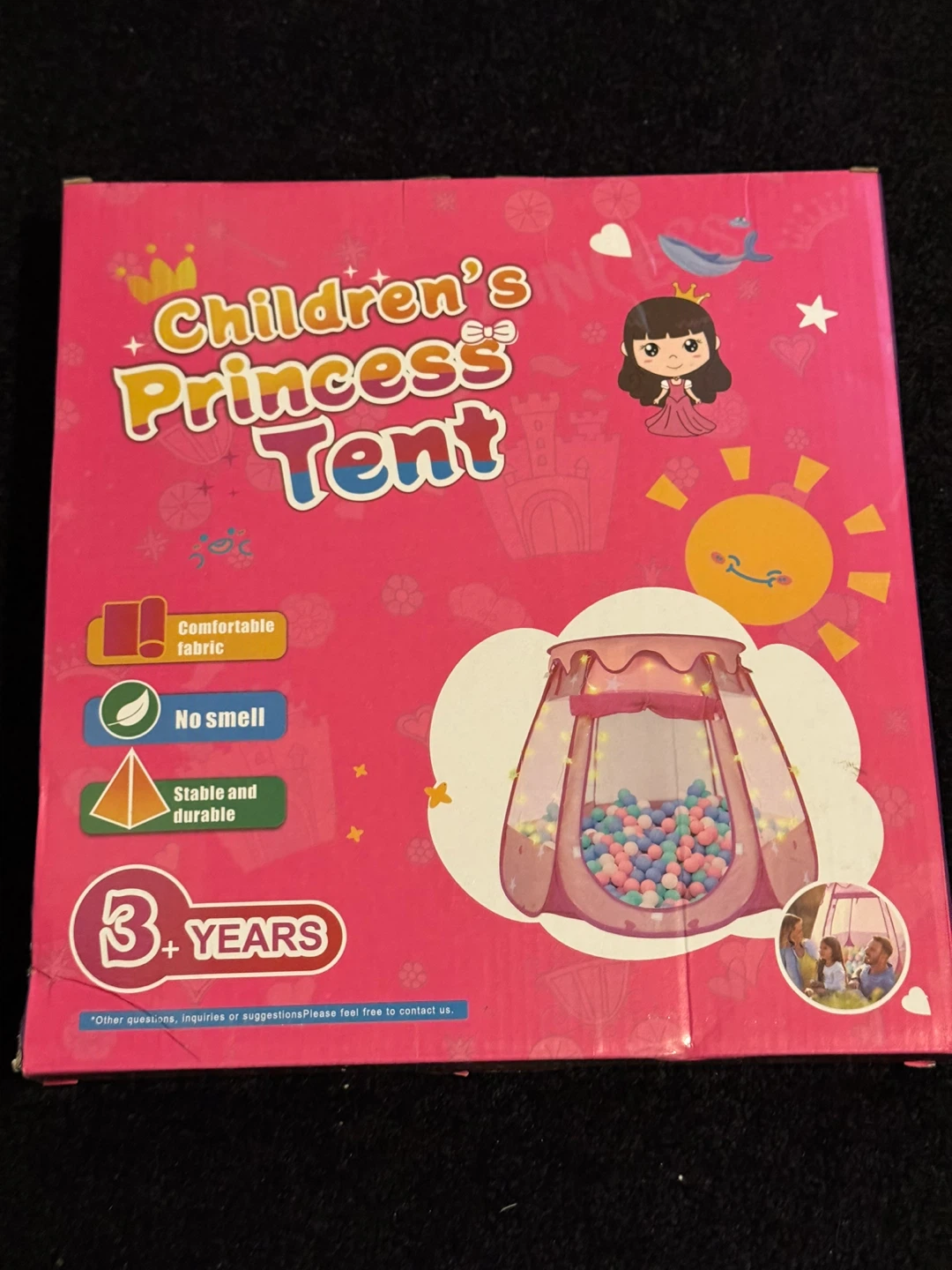 • Product Description: A children’s play tent with mesh windows, removable sunroof, crawling door, and anti-scratch velcro.