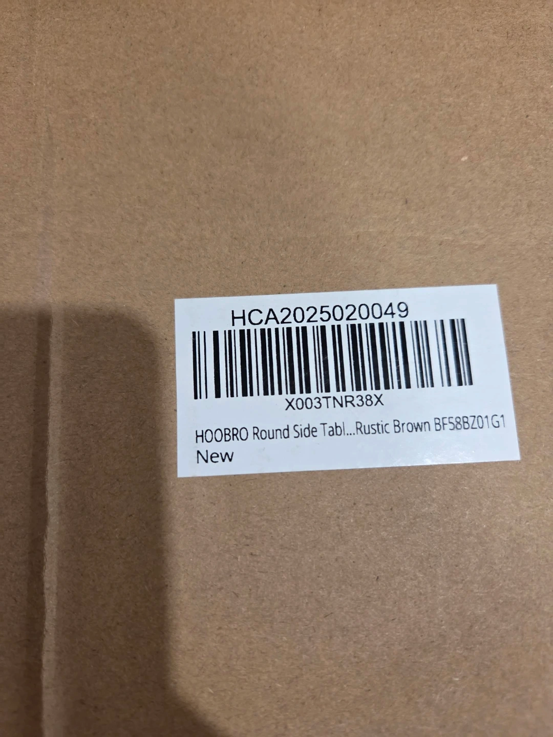 This is a Hoobro round side table. It comes in a rustic brown finish. It's a great addition to any living space.
