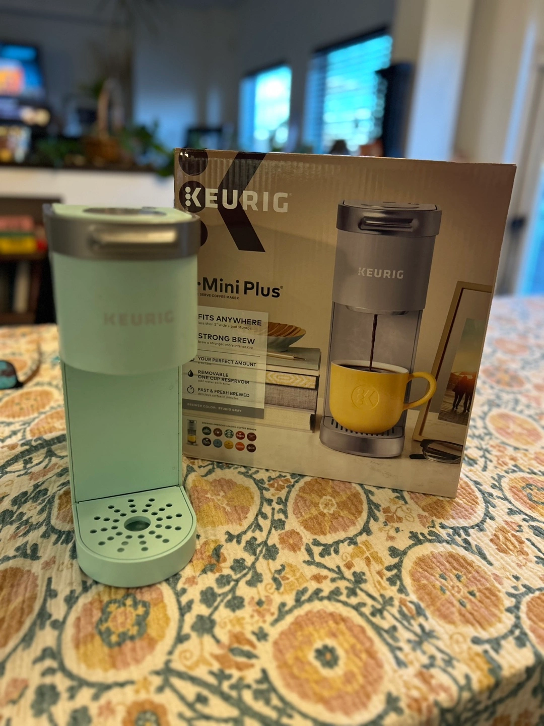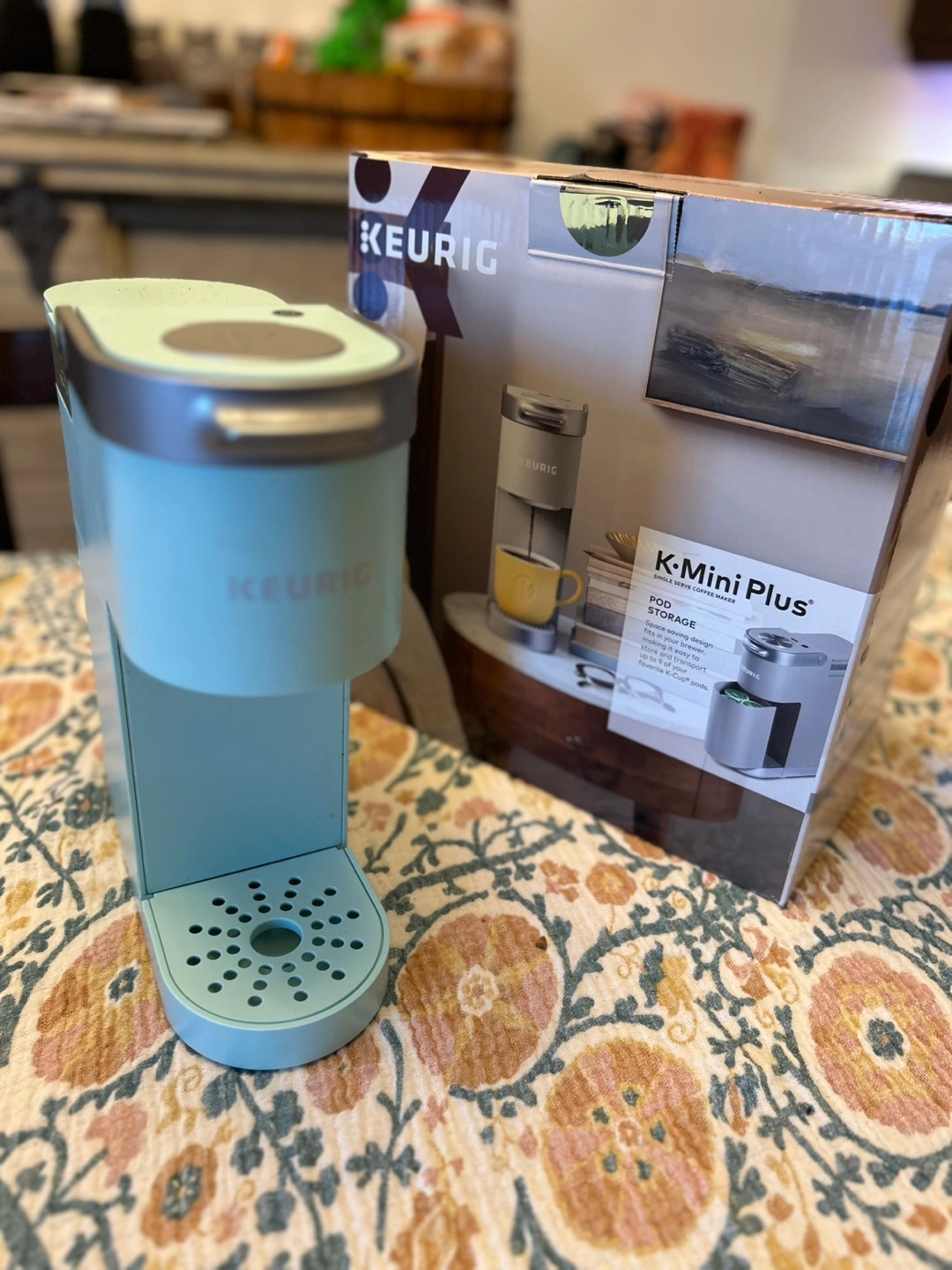 Brand new, mint green Keurig K-Mini Plus coffee maker. Compact design, perfect for small spaces. Brew your favourite K-Cup pods. Includes removable water reservoir. Fast and easy to use.