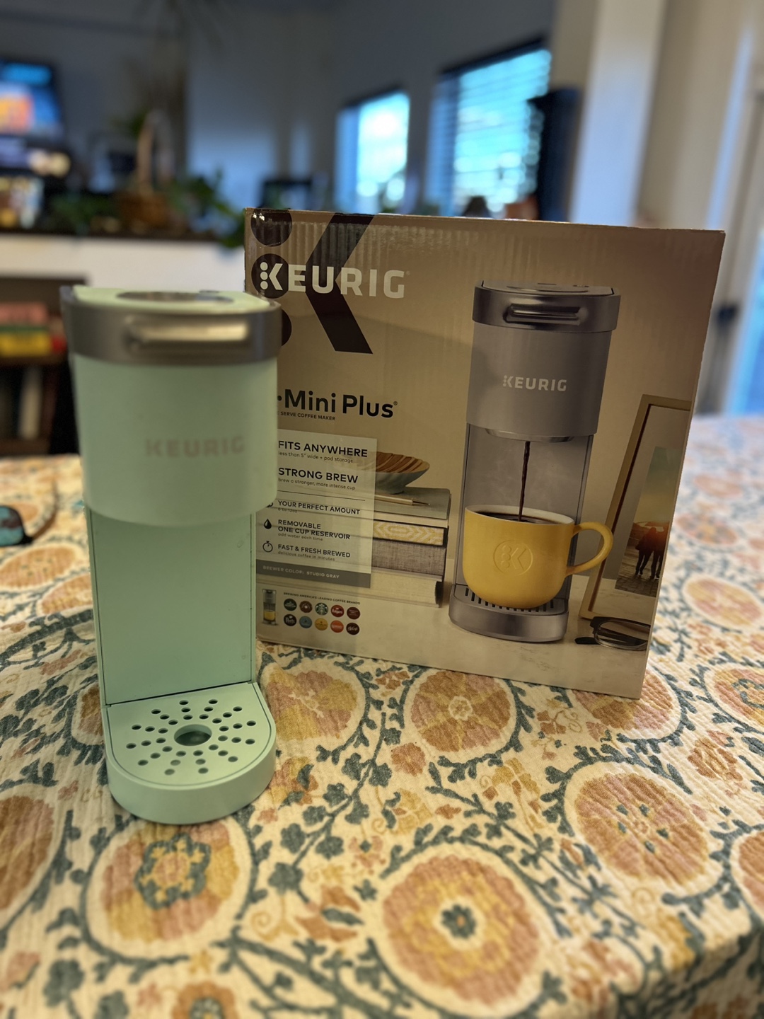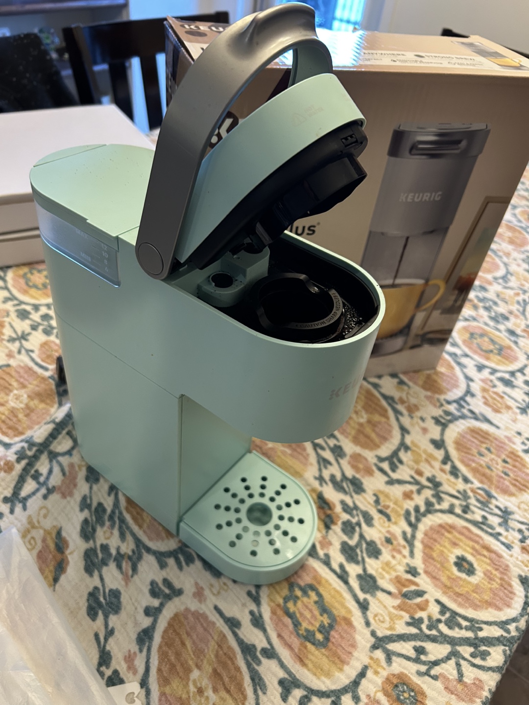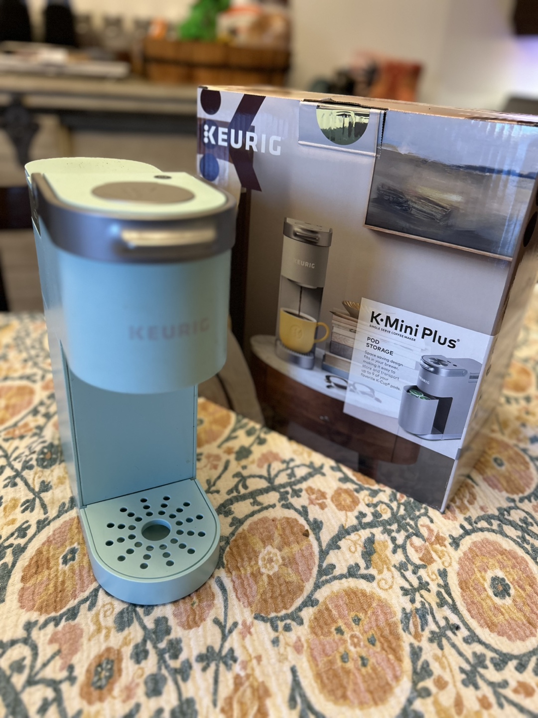 Brand new, mint green Keurig K-Mini Plus coffee maker. Compact design, perfect for small spaces. Brew your favourite K-Cup pods. Includes removable water reservoir. Fast and easy to use.