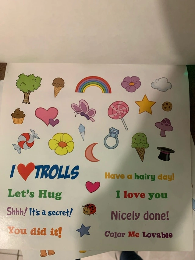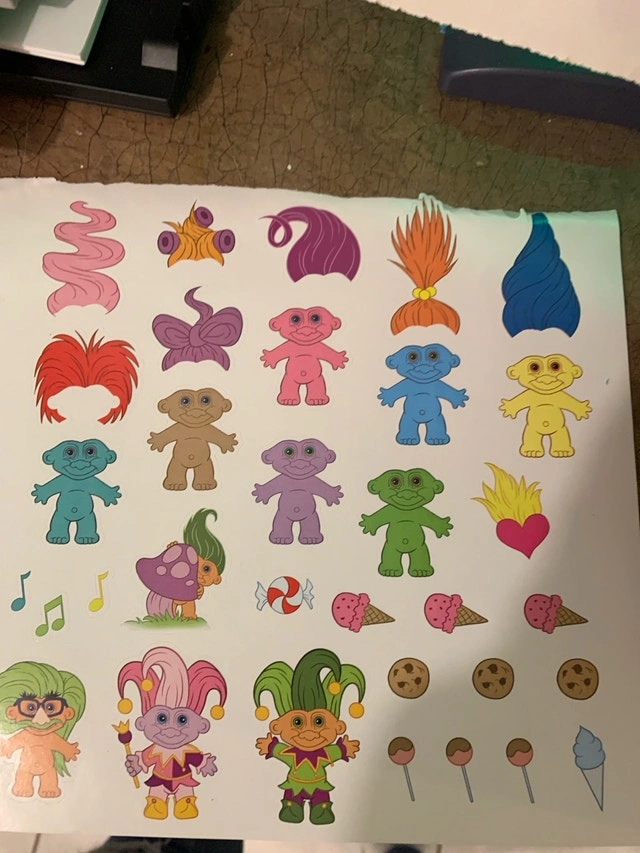 I'm selling a vintage Troll themed sticker book in used condition. The pages are filled with a variety of colourful Troll themed stickers, perfect for crafts. Please review the images for specific details on the condition. These stickers are ready to bring a touch of nostalgia to your collection! Cash accepted.