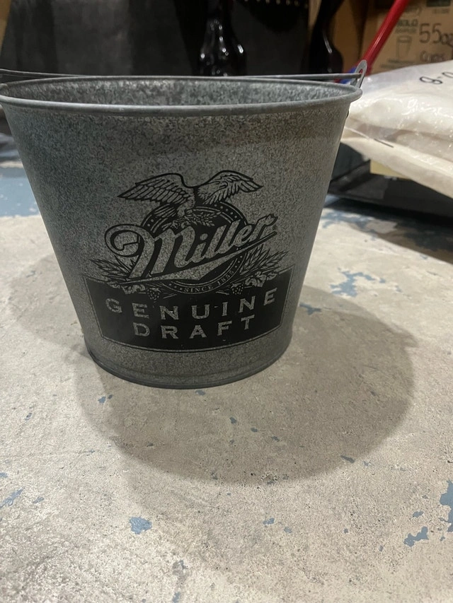 This is a collectible, used Miller Genuine Draft bucket, ideal for a bar, man cave, or Miller collector. This bucket has some wear, which is consistent with its age and adds to its vintage charm, as you can see in the photos. Looking to add a dash of quirky charm to your space? This bucket is perfect! If the ad is up, it's still available! Cash accepted.