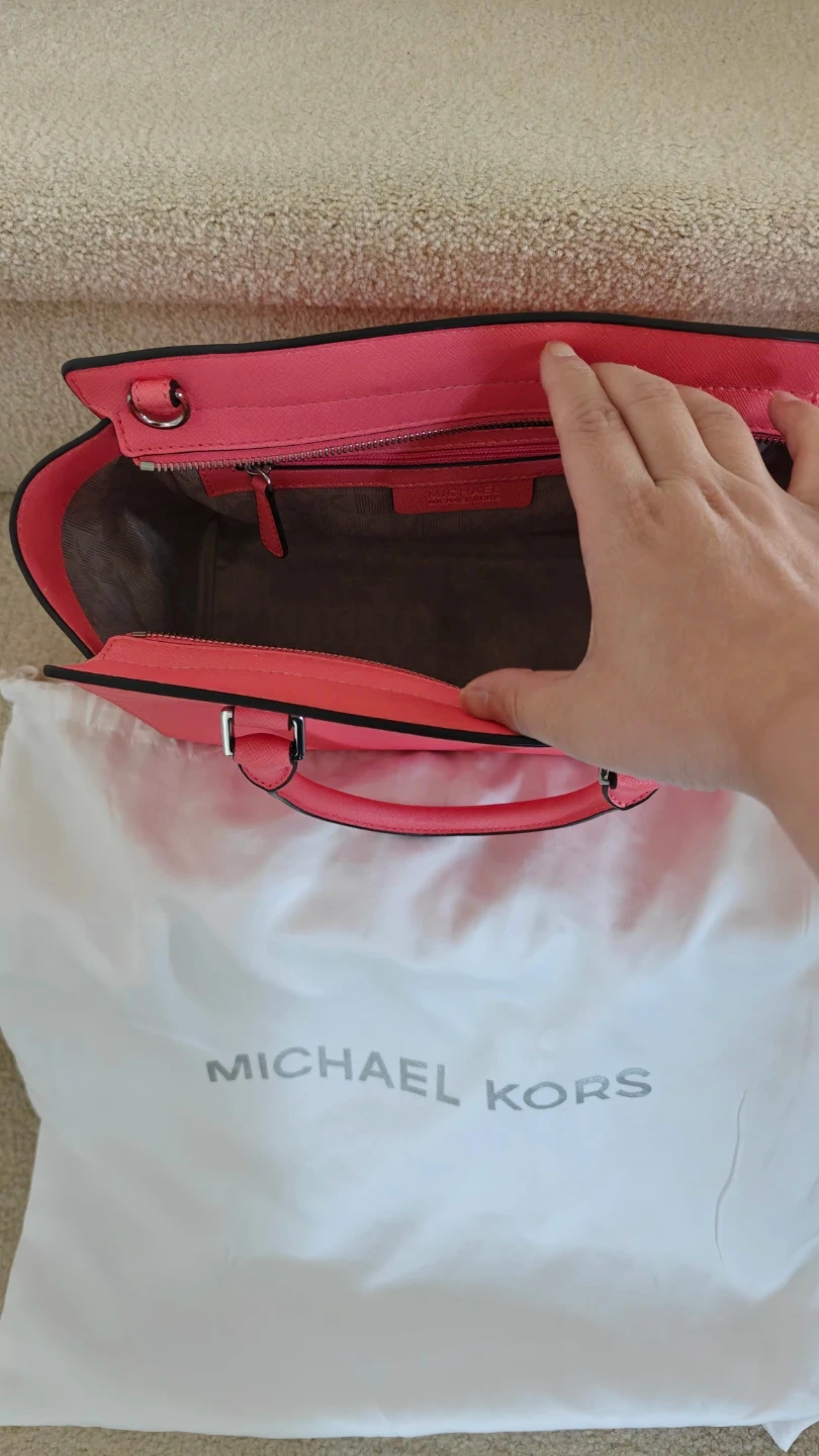 Almost New! Michael Kors pink leather satchel handbag. This bag has a zip top closure and interior pockets. Comes with a dust bag.