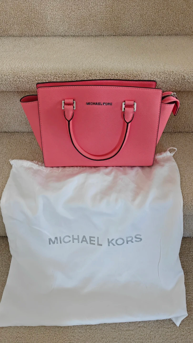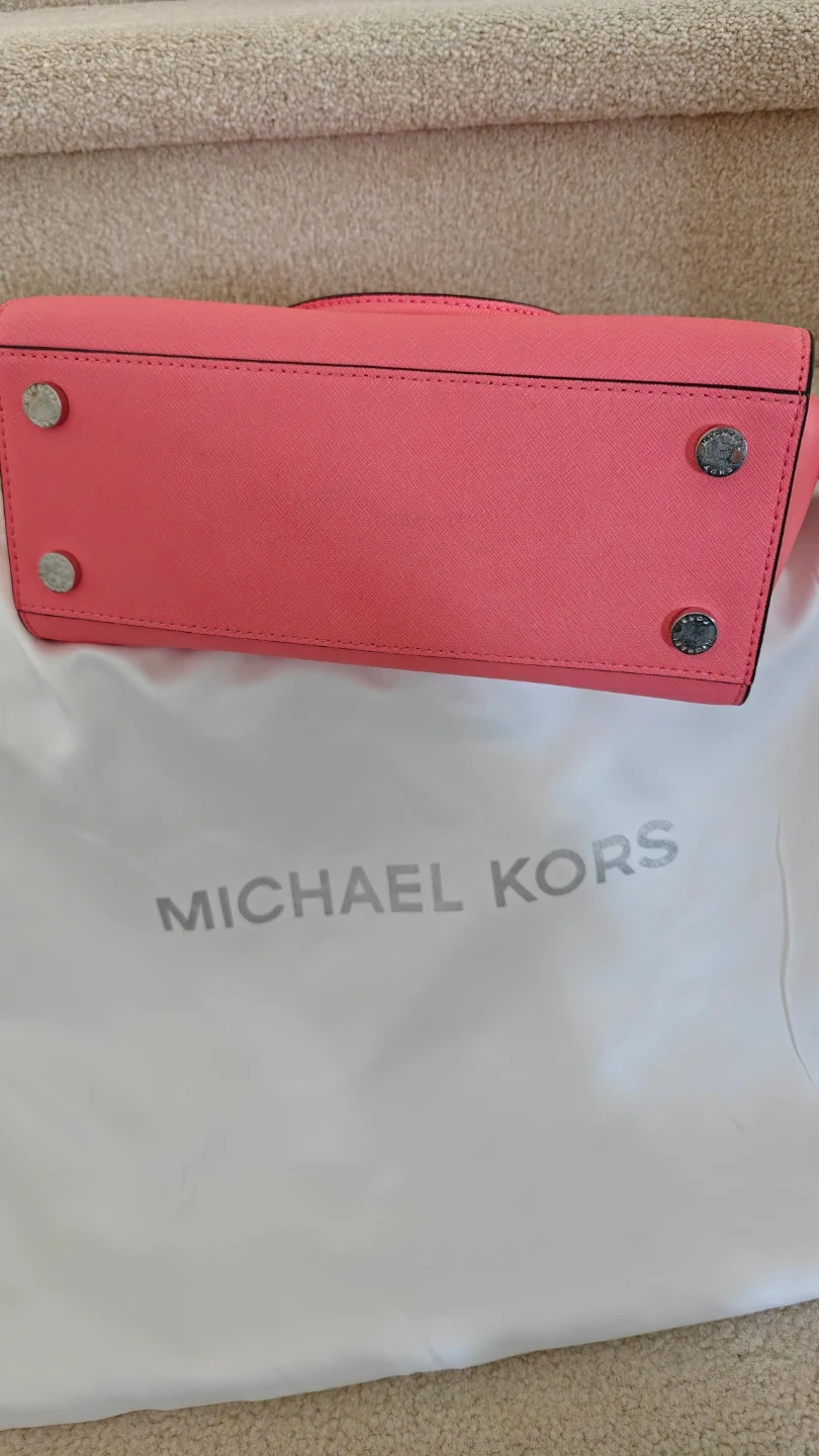Almost New! Michael Kors pink leather satchel handbag. This bag has a zip top closure and interior pockets. Comes with a dust bag.