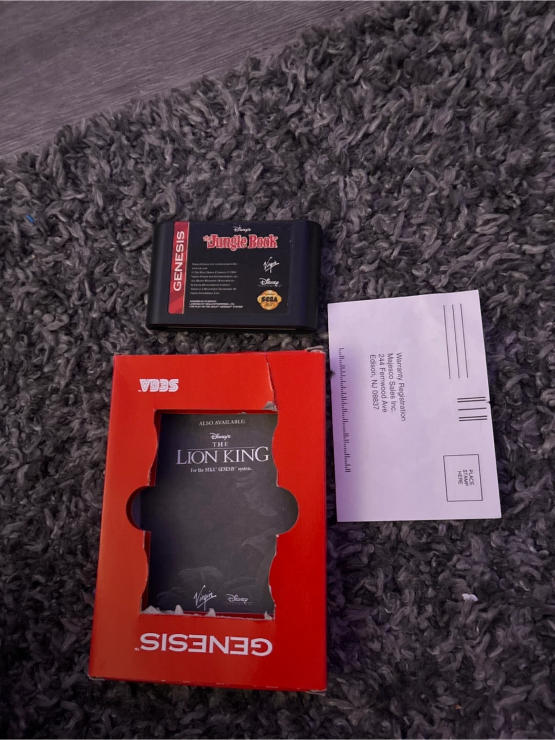 This is Disney's The Jungle Book game for the Sega Genesis system. It includes the game cartridge, original box, and warranty registration card. A classic for Sega Genesis fans!