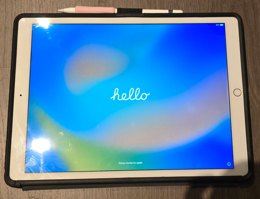 Selling my iPad Pro 12.9inch Cellualr, 128gb storage. Complete with the Apple Pencil and OttoBox Case. And screen protector is already attached. It's in great shape and ready for a new home. Perfect for taking notes, study IELTs, drawing, or just browsing the web!