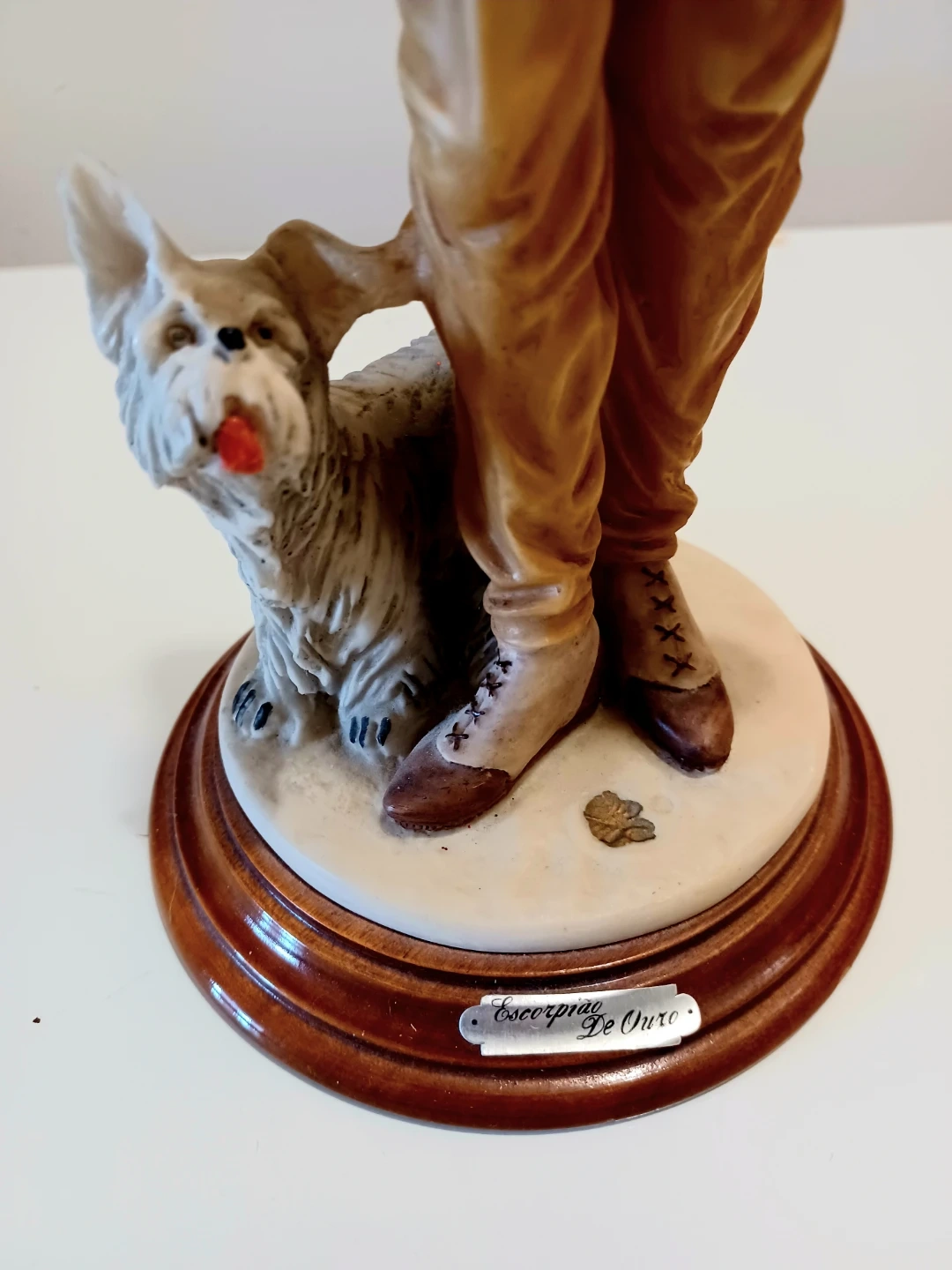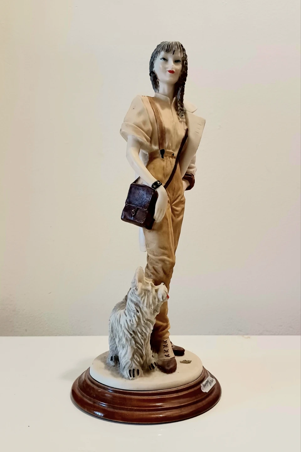 Vintage, Collectible Escorpiao De Ouro Figurine of a woman with a dog, in good condition. It makes a great curio!
