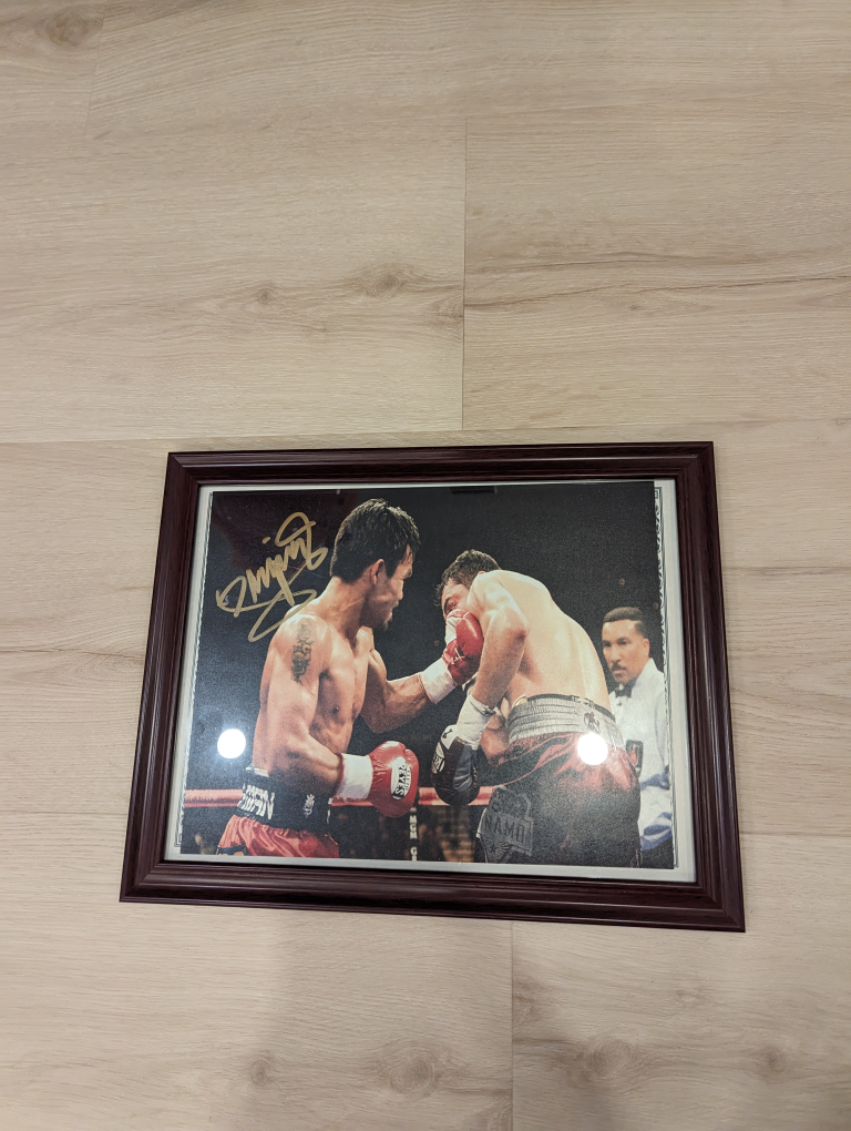 Selling a framed photo of Manny Pacquiao in a boxing match. It appears to be autographed! Great piece for a boxing fan or sports memorabilia collector