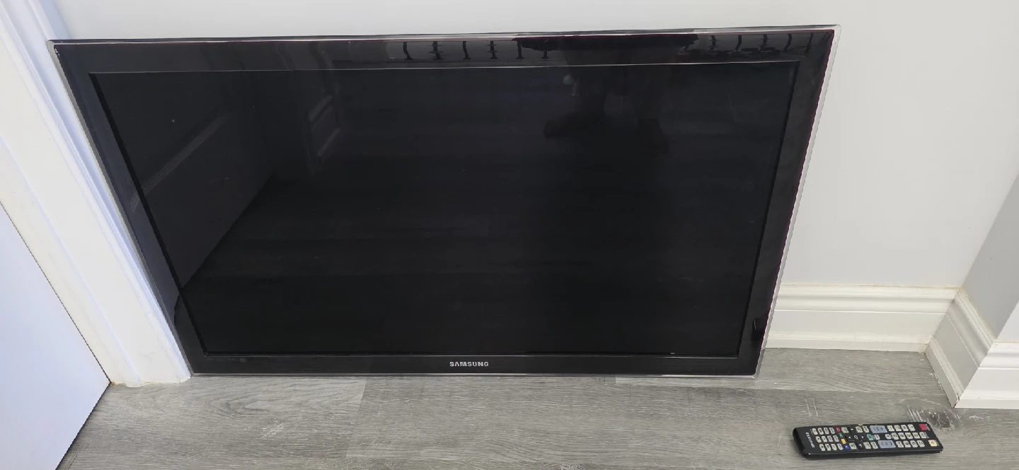 Selling a Samsung TV with its remote. The TV is in good working condition. Perfect for a spare room or a cottage!Great doe kids gaming,40inch EUC. is not a smart TV.it has a wall mount on back no stand.