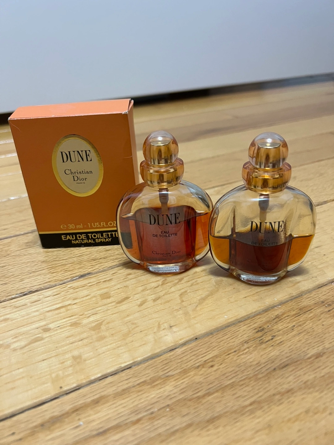 Vintage Christian Dior Dune Eau de Toilette. 30ml bottle. Set of two. Comes with one original box.