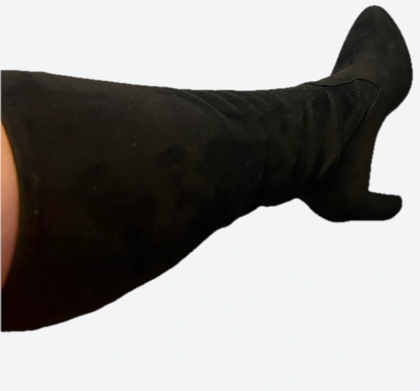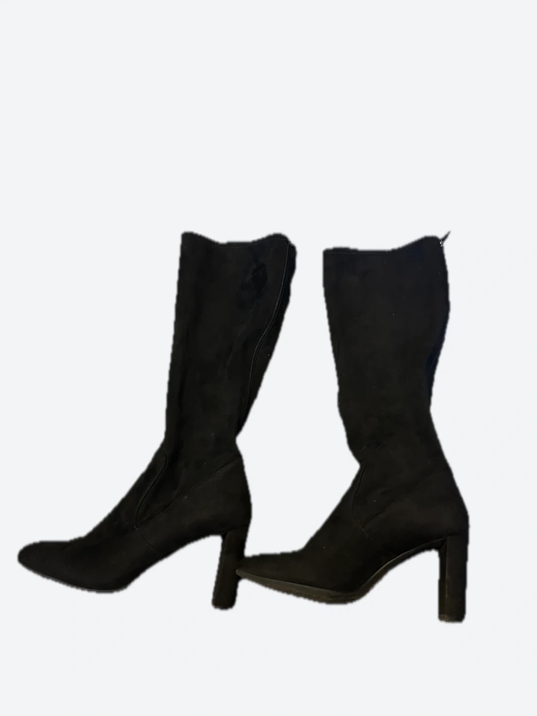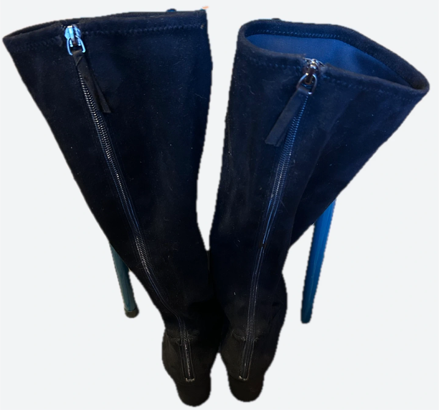 Selling a pair of gently used Nine West knee-high suede boots in black. They have a sleek, stylish look with a comfortable heel. Perfect for dressing up or down! Size 9