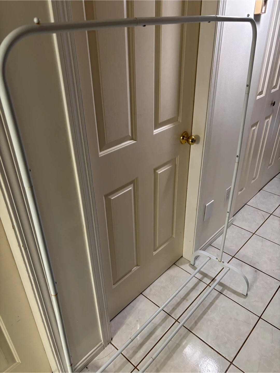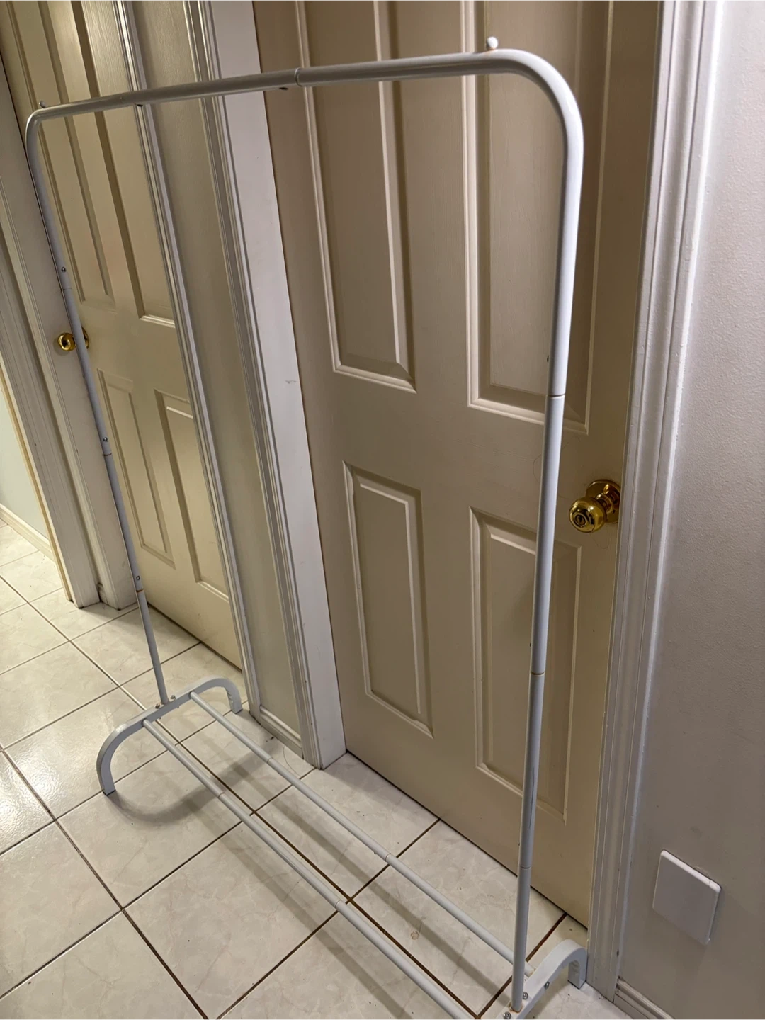 Lightweight clothes rack in good condition, ideal for extra hanging space in a bedroom, closet, or laundry area. Easy to move and perfect for everyday clothing or lighter garments.