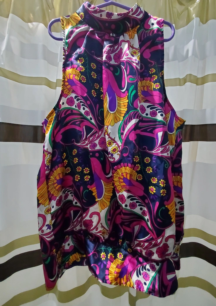 Satiny halter sleeveless top