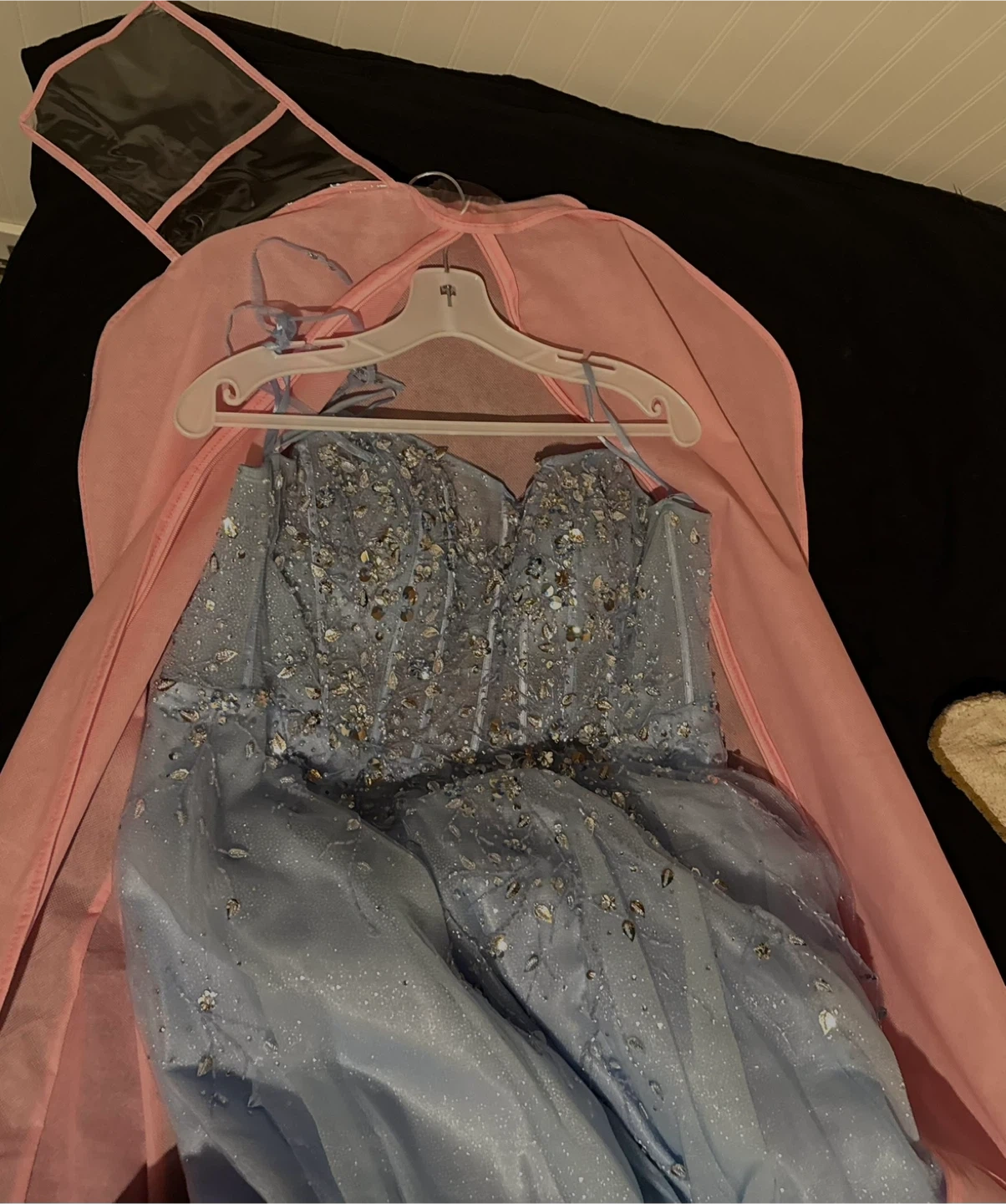 corset top, strapless with lace and beaded top. the top is a bit see through, but the cups were adjusted for the bust.