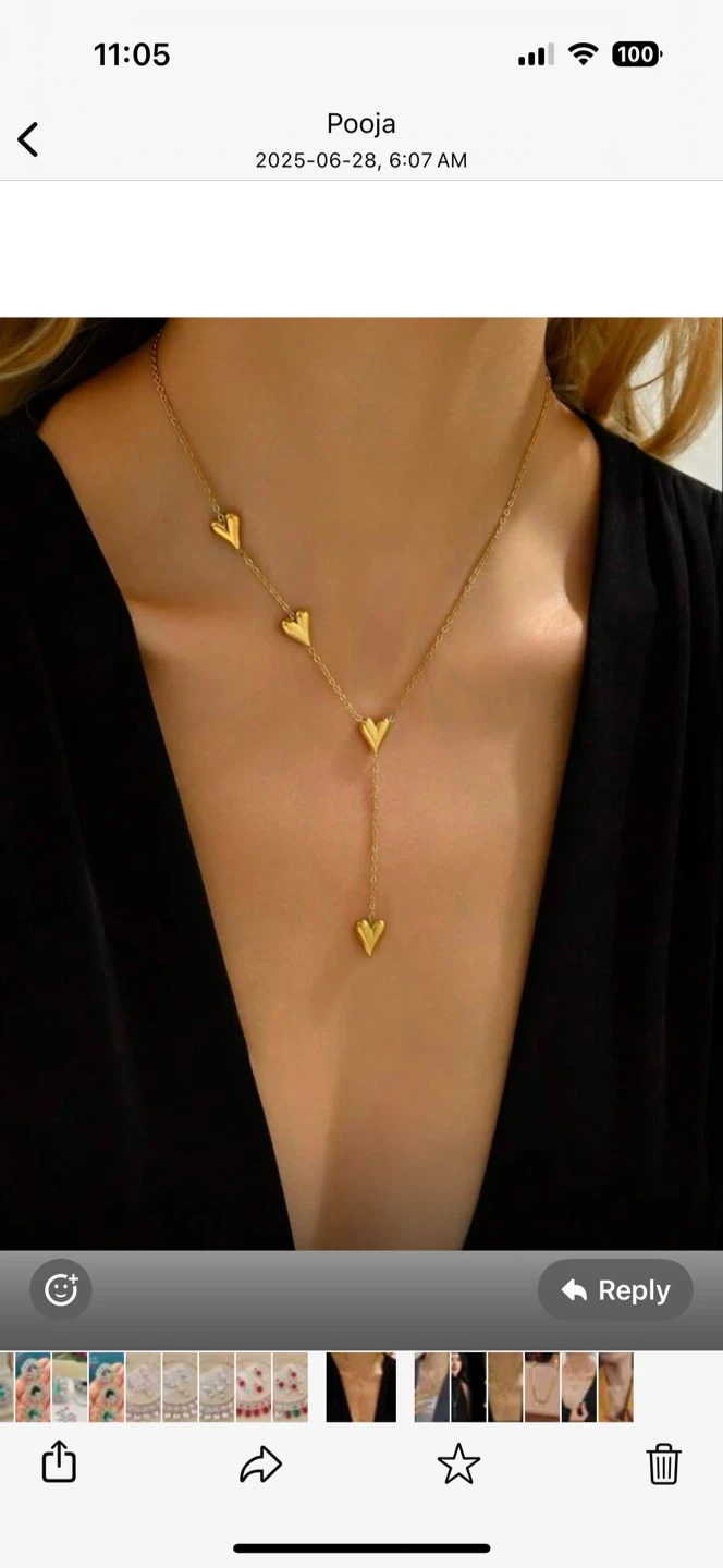 Selling a cute gold-tone necklace featuring a Y-shaped lariat design with heart charms! It's in great condition and would make a lovely addition to any outfit
