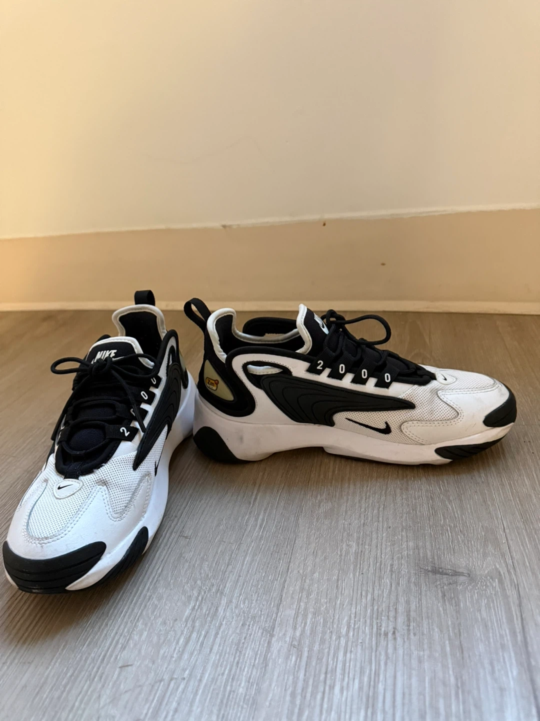 White and black Nike Zoom 2K women’s sneakers. Mesh and synthetic leather upper. Rubber sole. Lace-up closure. Perfect for everyday wear!