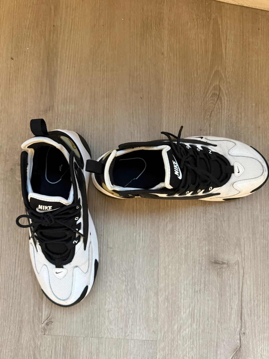 White and black Nike Zoom 2K women’s sneakers. Mesh and synthetic leather upper. Rubber sole. Lace-up closure. Perfect for everyday wear!