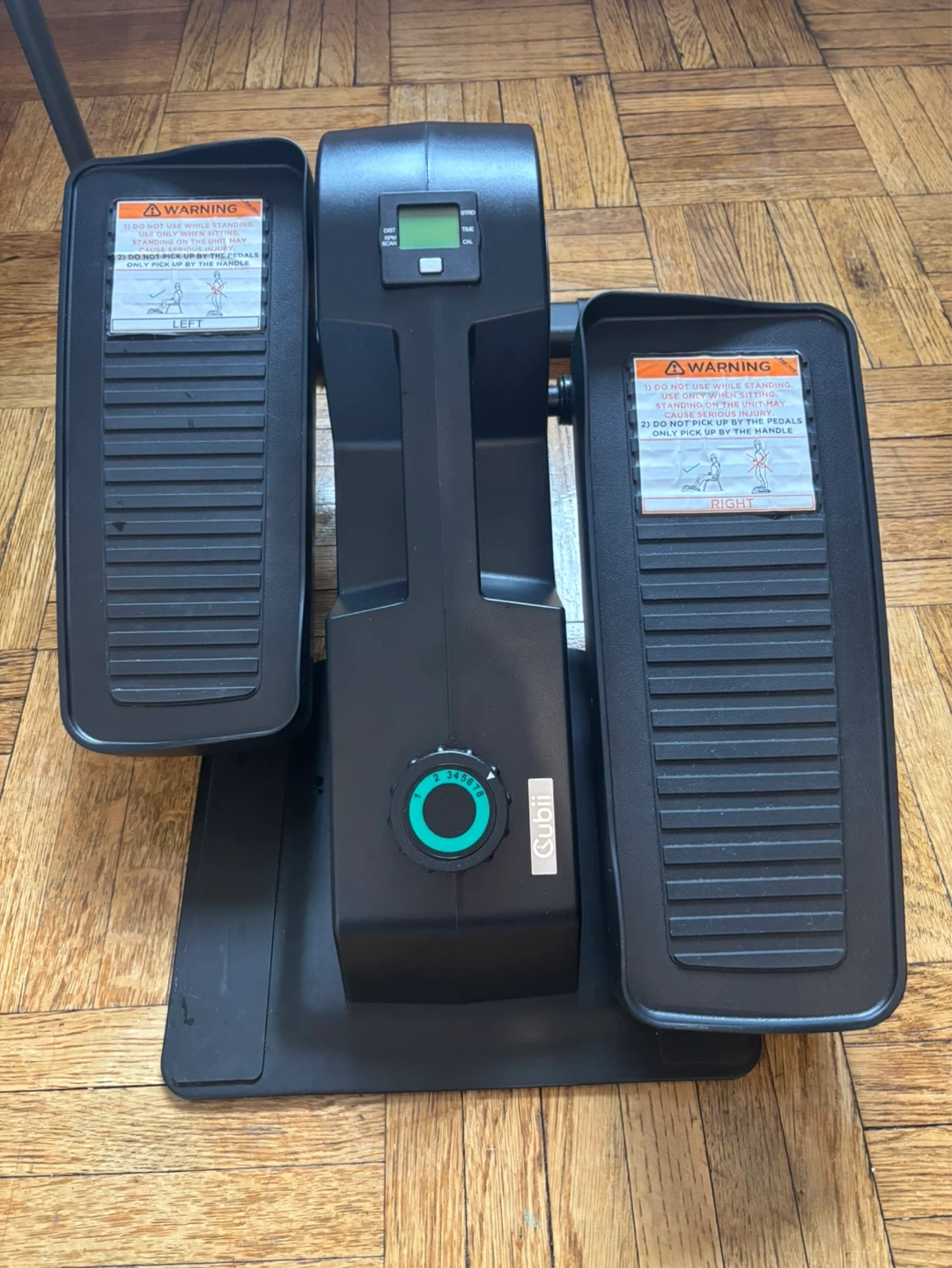 This is a Cubii under-desk elliptical, perfect for gentle exercise while seated. It features adjustable resistance settings for a customized workout. It's compact and designed for home or office use.