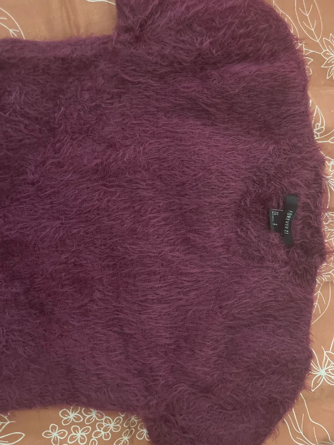 Selling a cute fuzzy burgundy dress from Forever 21! It's a size small and in great condition. Perfect for a night out or a cozy day in!
