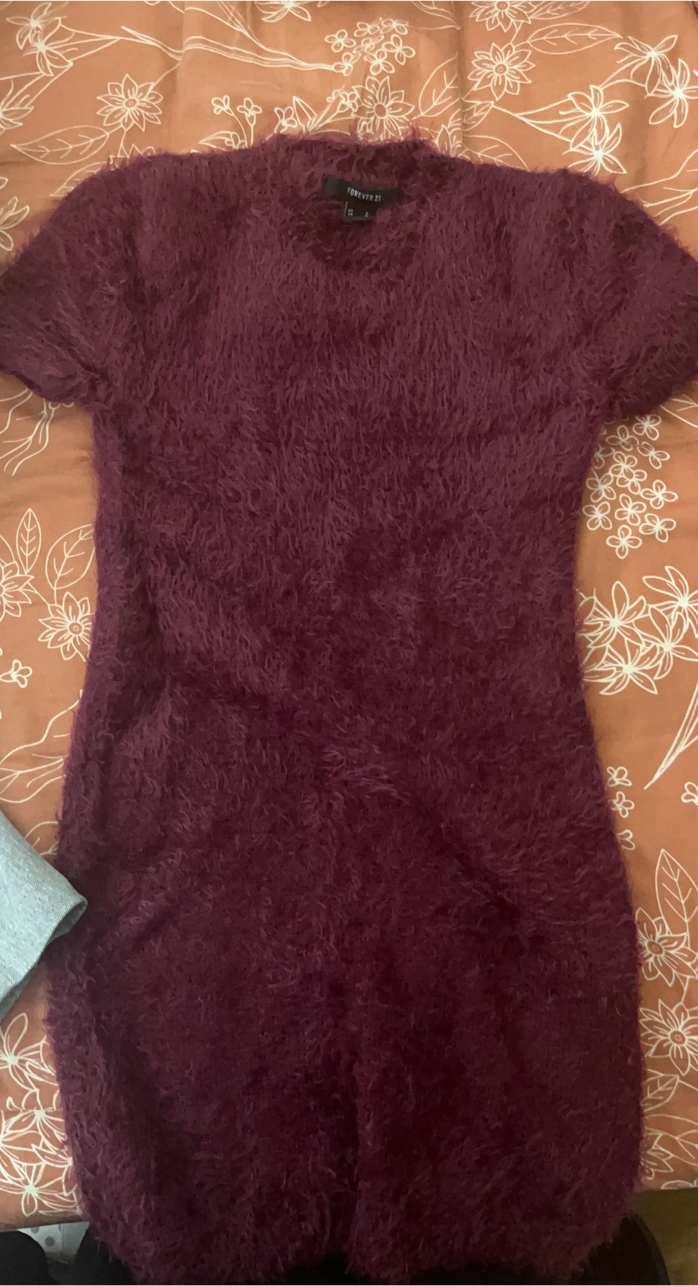 Selling a cute fuzzy burgundy dress from Forever 21! It's a size small and in great condition. Perfect for a night out or a cozy day in!