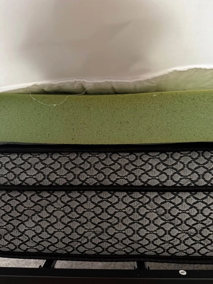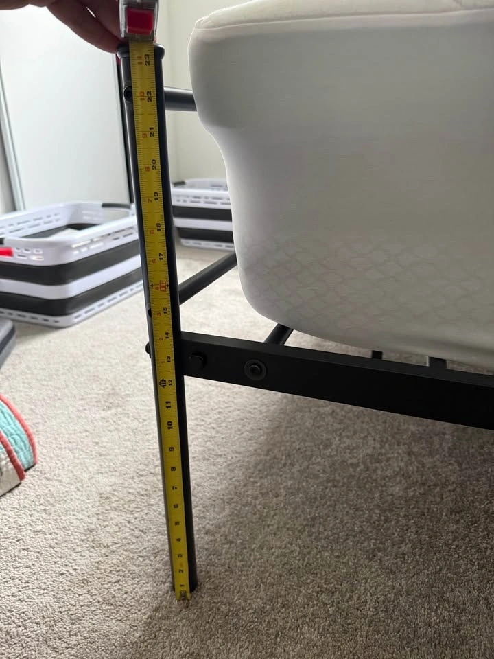 Features a modern black metal frame with a geometric diamond headboard/footboard and 14-inch clearance for under-bed storage. Includes a comfortable double mattress with a premium green-tea memory foam topper for extra plushness, and a fitted mattress protector.