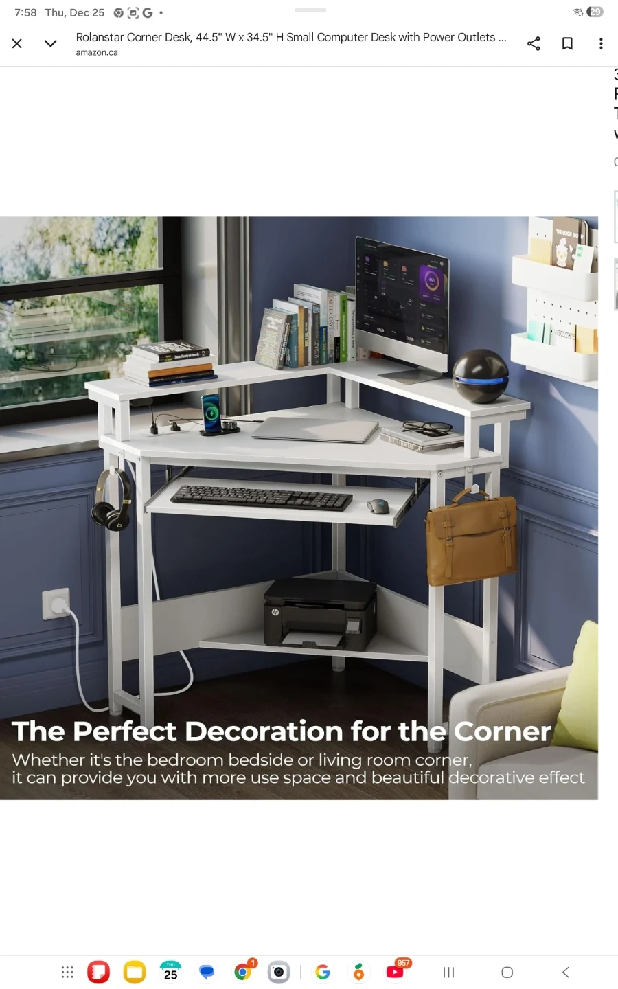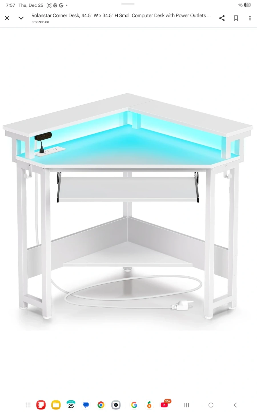 Looking to sell this Rolanstar Corner Desk! It's a great computer desk with power outlets, perfect for any corner. The dimensions are 44.5" W x 34.5" H. It's designed to provide more use space and a beautiful decorative effect. A perfect decoration for the corner!