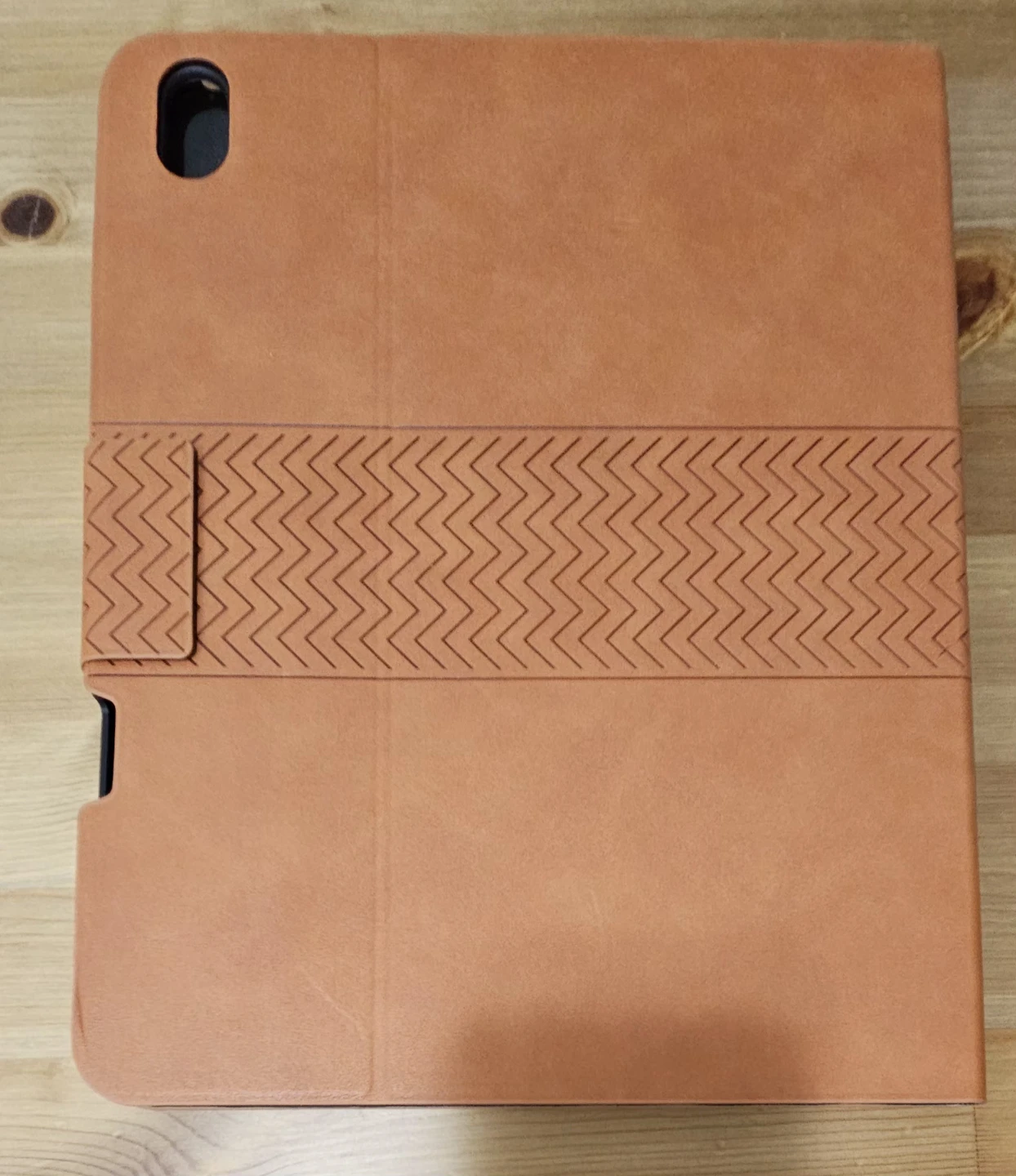 This orange folio case is designed for tablets. It features a textured elastic band to help secure the cover. The interior is a clear, flexible shell.