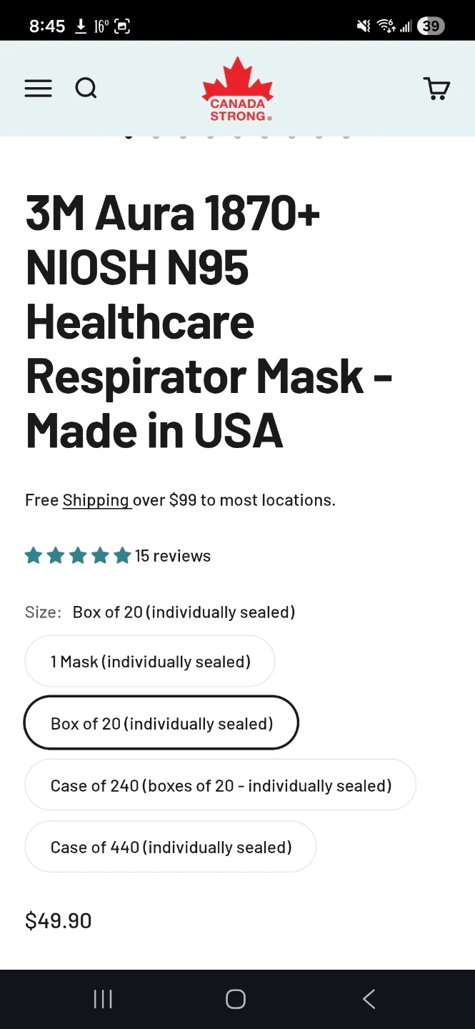 Buy & Sell3M Aura 1870+ NIOSH N95 Healthcare Respirator Mask (x20)3M Aura 1870+ NIOSH N95 Healthcare Respirator Mask (x20)$20Meet at Sheppard, Bayview, or Bloor/Yonge station or some surrounding areas. ConditionNewBrand3MWHERE TO MEETbloor stationView MapSELLEREllaYorkville1000+139 reviews0 chats·1 favorites·8 viewsSEND CHAT TO SELLERHi Ella! I’m interested in your listing.Hi Ella! I’m interested in your listing.Get the Karrot app to chatSign In to chat