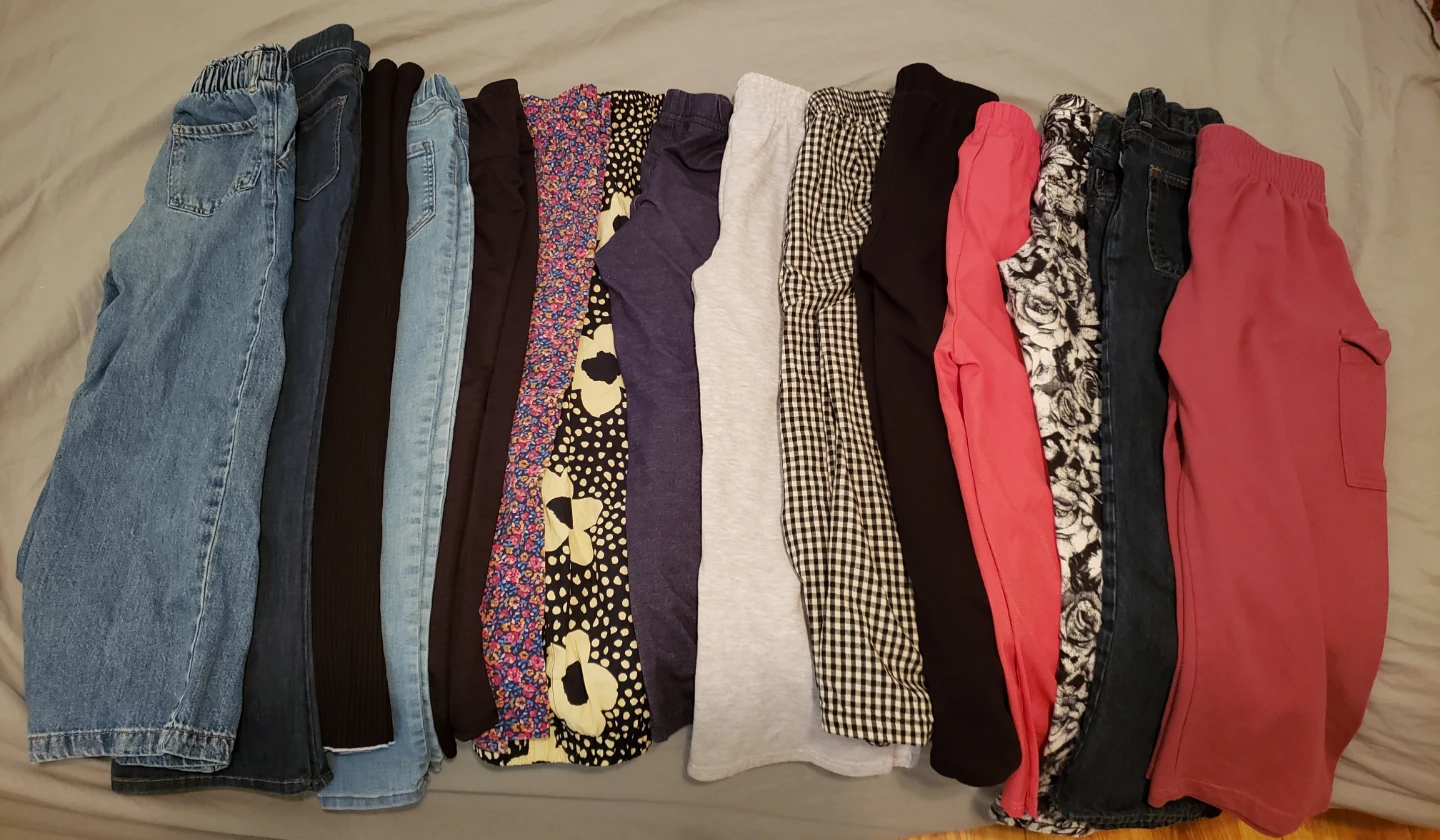 This bundle includes a variety of girls' pants and jeans, featuring denim, leggings, and patterned styles. Items are in good condition and ready for a new wardrobe. Perfect for everyday wear and active play!take all for $15