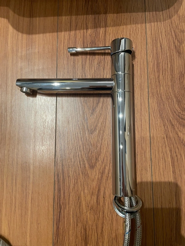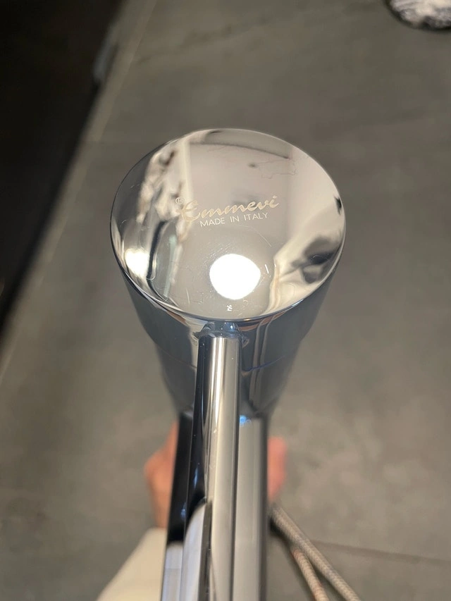 Add a touch of Italian elegance to your kitchen with this Emmevi faucet. This stylish fixture features a sleek design and durable chrome finish. It is in used, but good condition, ready to bring a modern flair to your kitchen or bar area. Specifications: - Brand: Emmevi - Made in Italy - Finish: Chrome - Height: 12”. If you're reading this, the faucet is still available and waiting for a new home. Cash accepted.