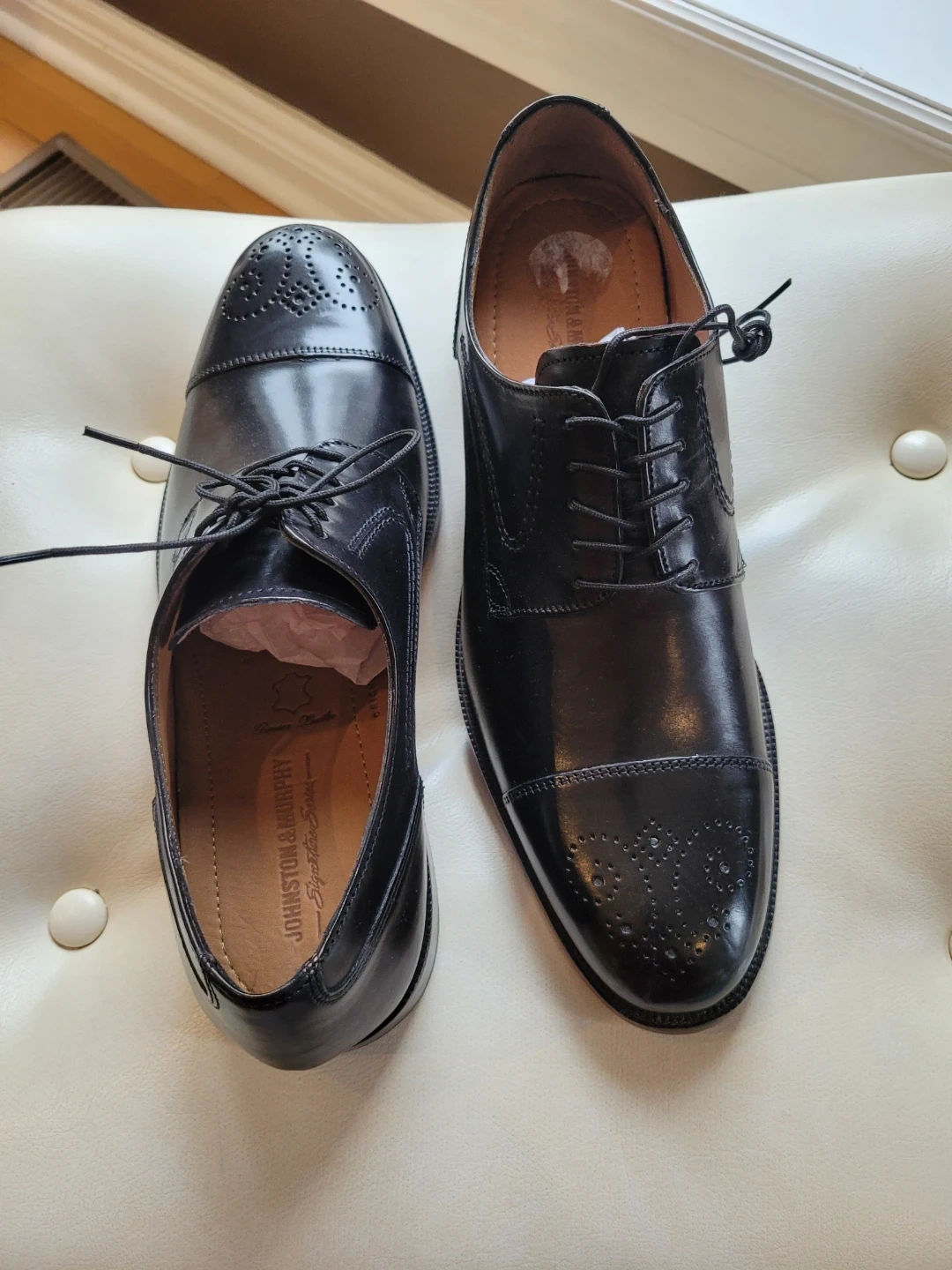 Classic black cap toe Oxford dress shoes from Johnston & Murphy.