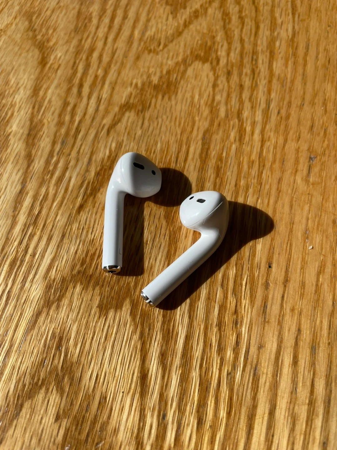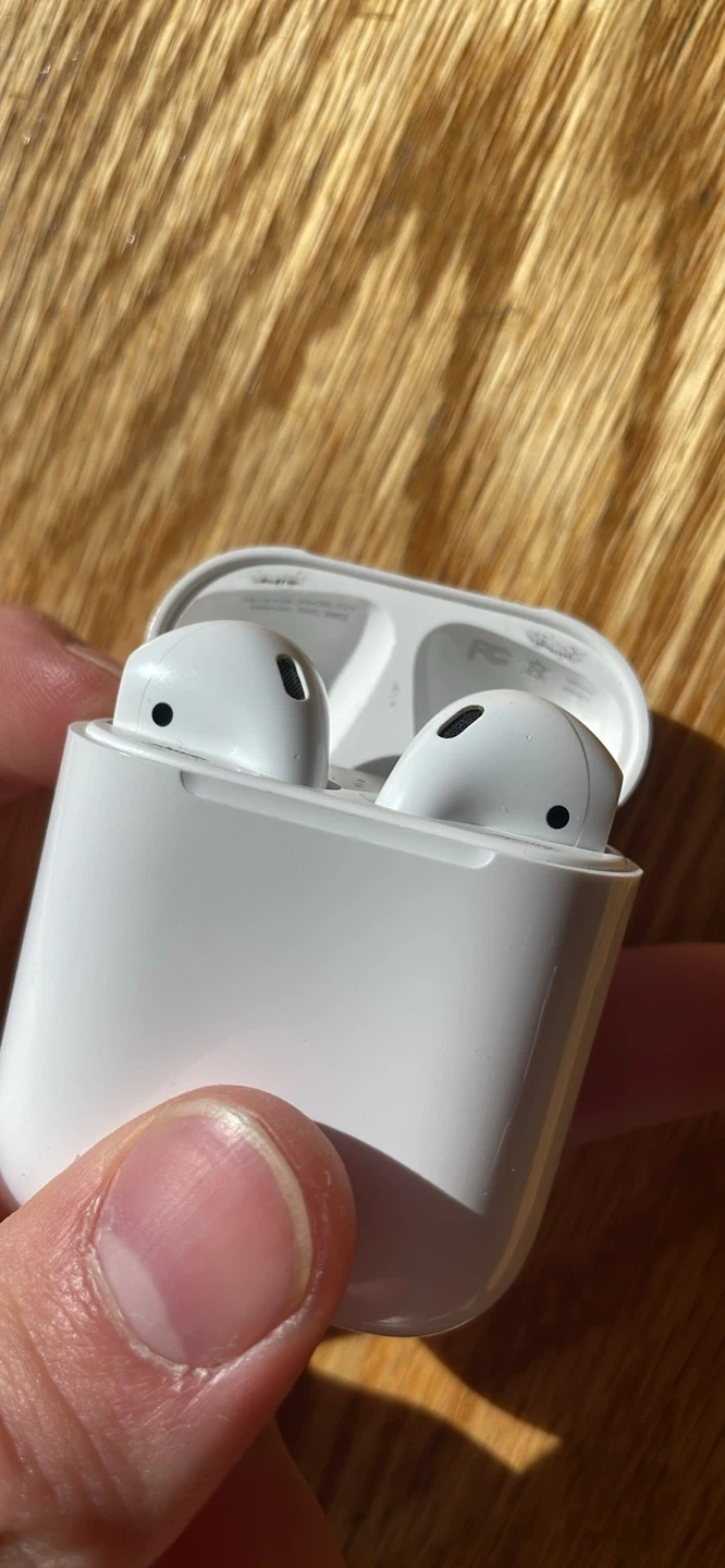 Selling my old AirPods since I upgraded, the right ear is slightly quieter than the left but you can change it in settings. Pretty beat up but hey the job done.