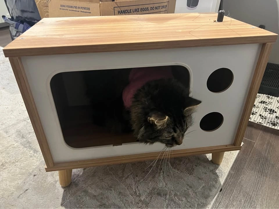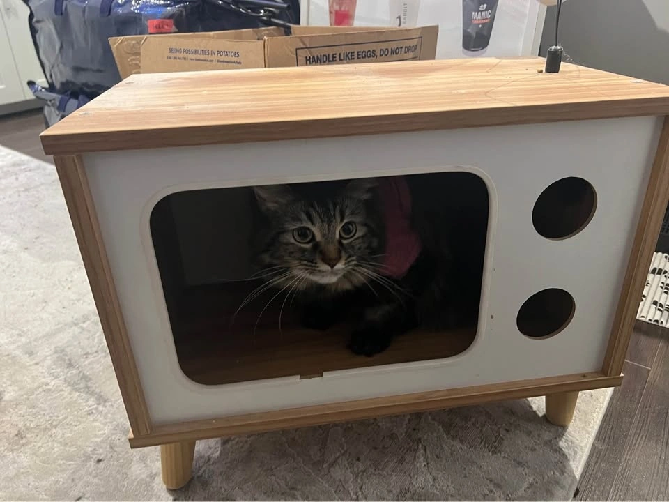 Buy & SellCat TV House + Cat TentCat TV House + Cat Tent$25My cat barely used this house, but the frame got damaged during a move. The tent can come with it too, if you'd like, at no extra cost.WHERE TO MEETTim HortonsView MapSELLERverifiedNatalieHillcrest Village731 review0 chats·1 favorites·9 viewsSEND CHAT TO SELLERHi Natalie! I’m interested in your listing.Hi Natalie! I’m interested in your listing.Get the Karrot app to chatSign In to chat